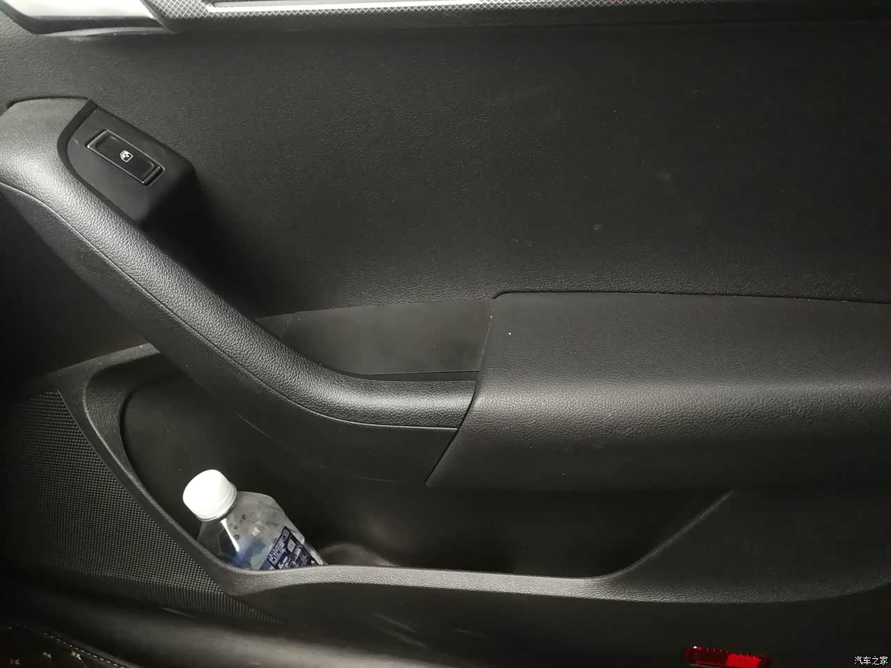 门上的储物格是有些尴尬,开口太窄了,只能放小瓶的矿泉水,250mL那种的。中央扶手也是,放进去一瓶水(500mL)之后,就盖不上盖了,太浅了。