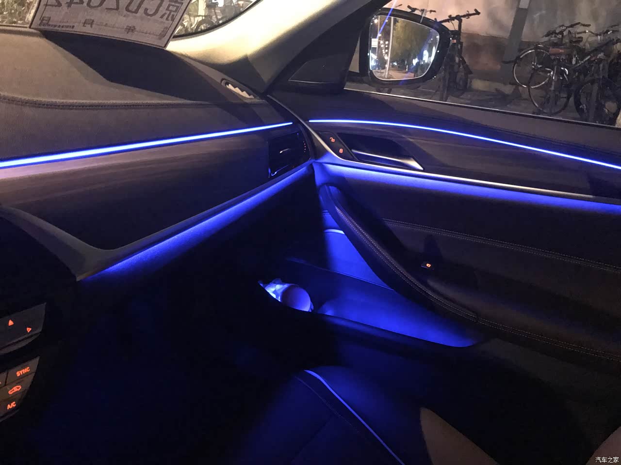 不知从什么时候起,流行起氛围灯。现在A级车都配,5系当然不能例外。多种颜色可调