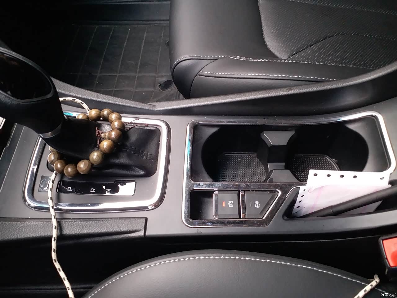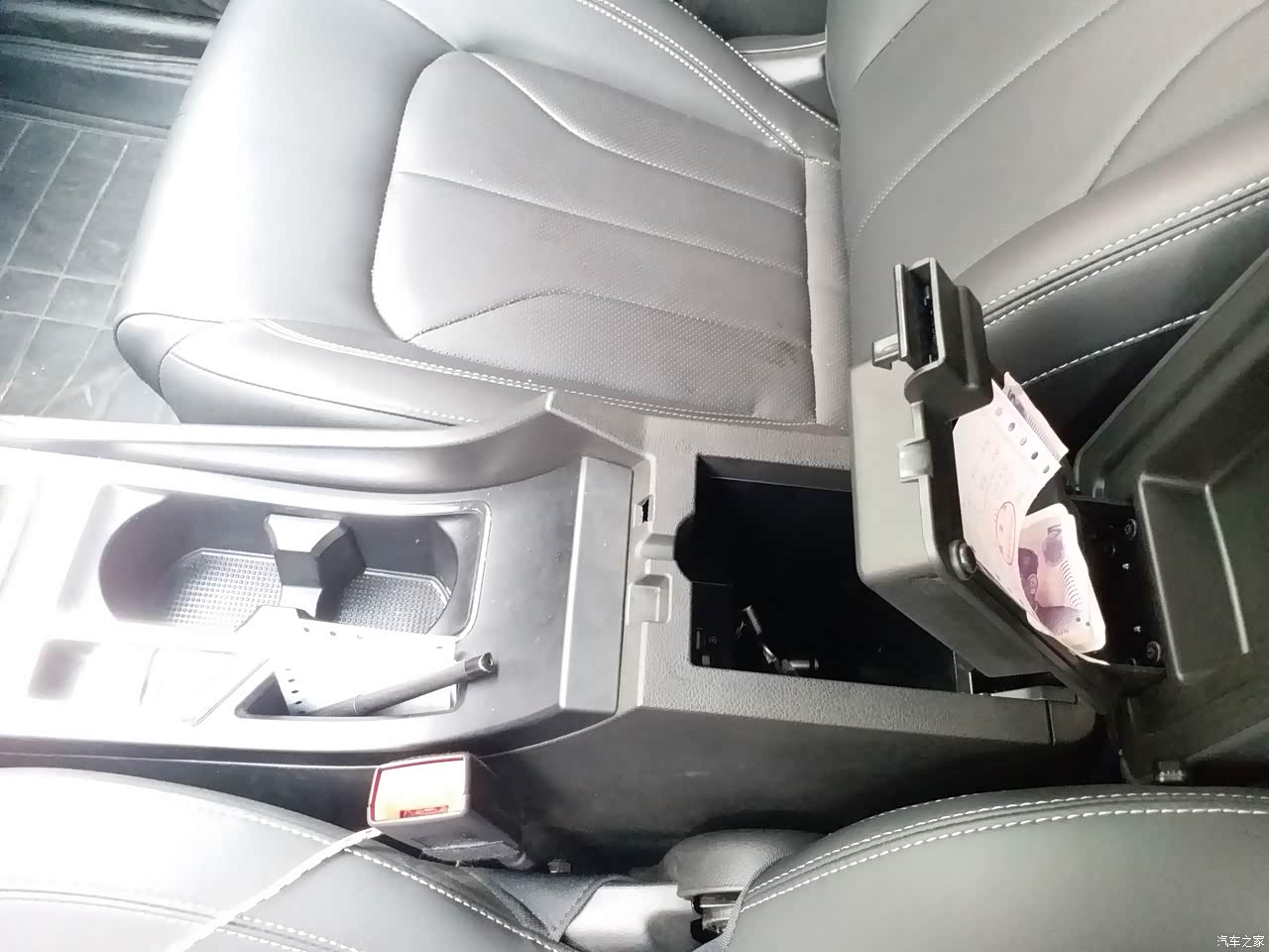 驾驶座位置的中央扶手可以放两个水瓶。