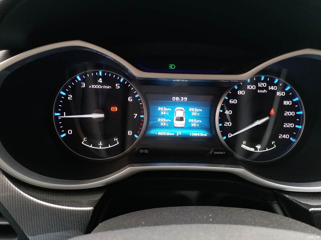 彩色的行车电脑显示也很丰富,续航里程、胎压,油耗等等。