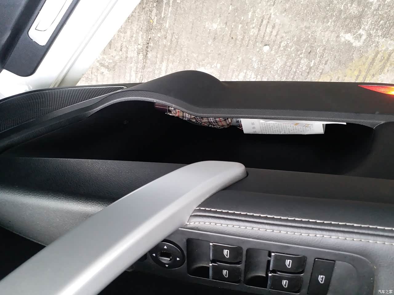 车门的储物也非常丰富,空间也够用,存放雨伞、水杯都不成问题。