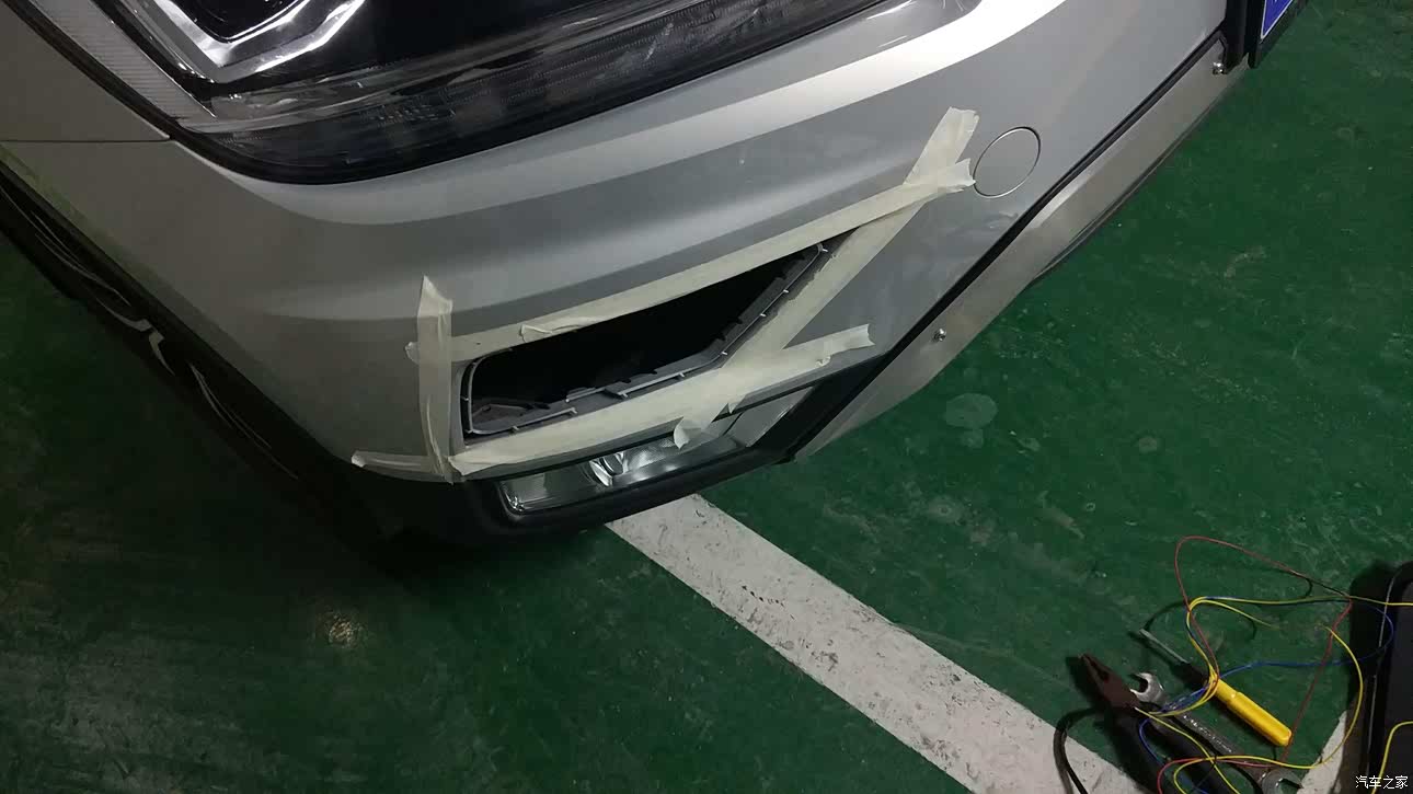拆掉左右日行灯位置装饰品,用胶纸垫着防止擦花车漆