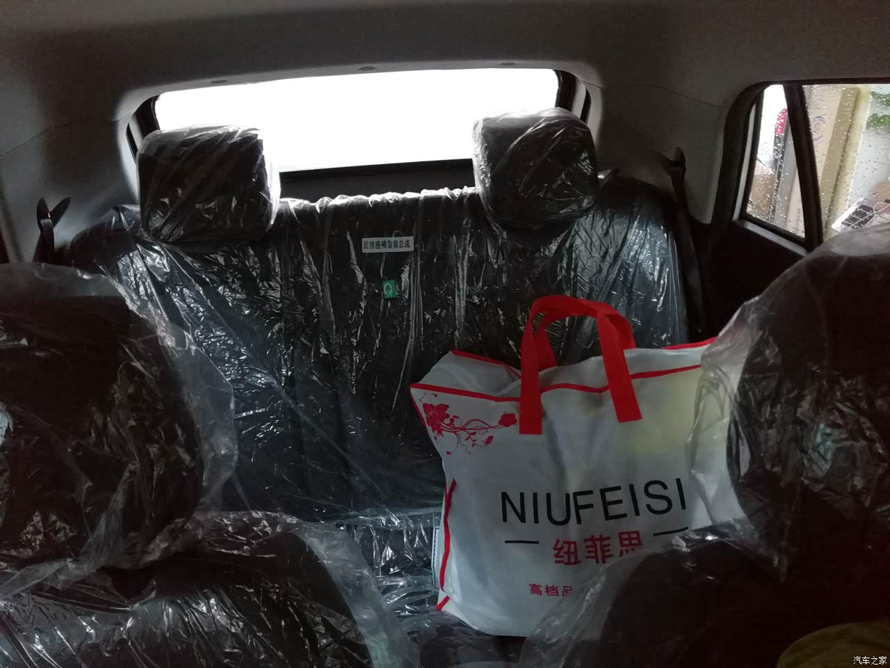 后排空间坐两个大人绰绰有余,塑料件还没取掉。