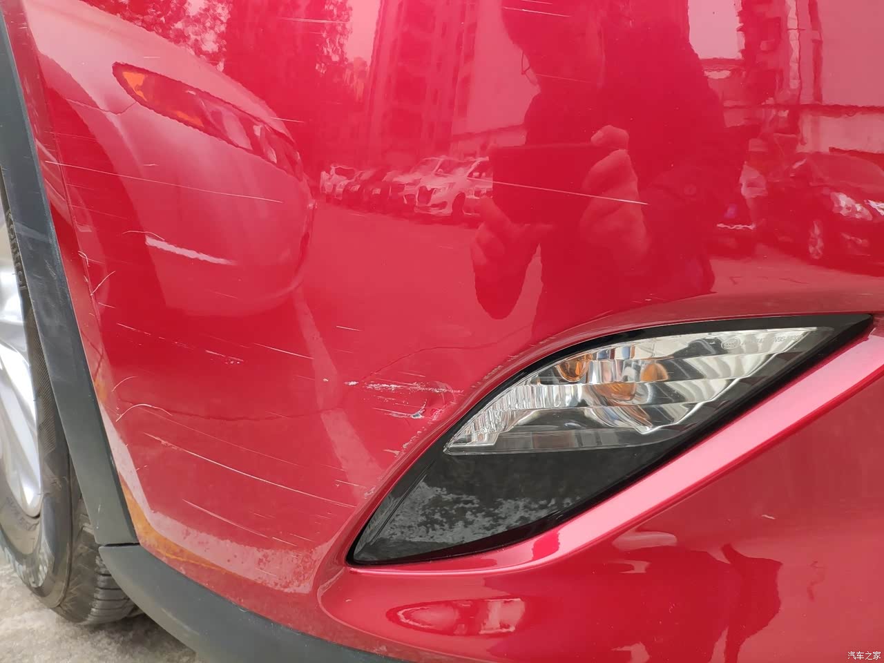 右脚刮了,洗车的时候进行了抛光,痕迹小了很多,不细看还看不出来。