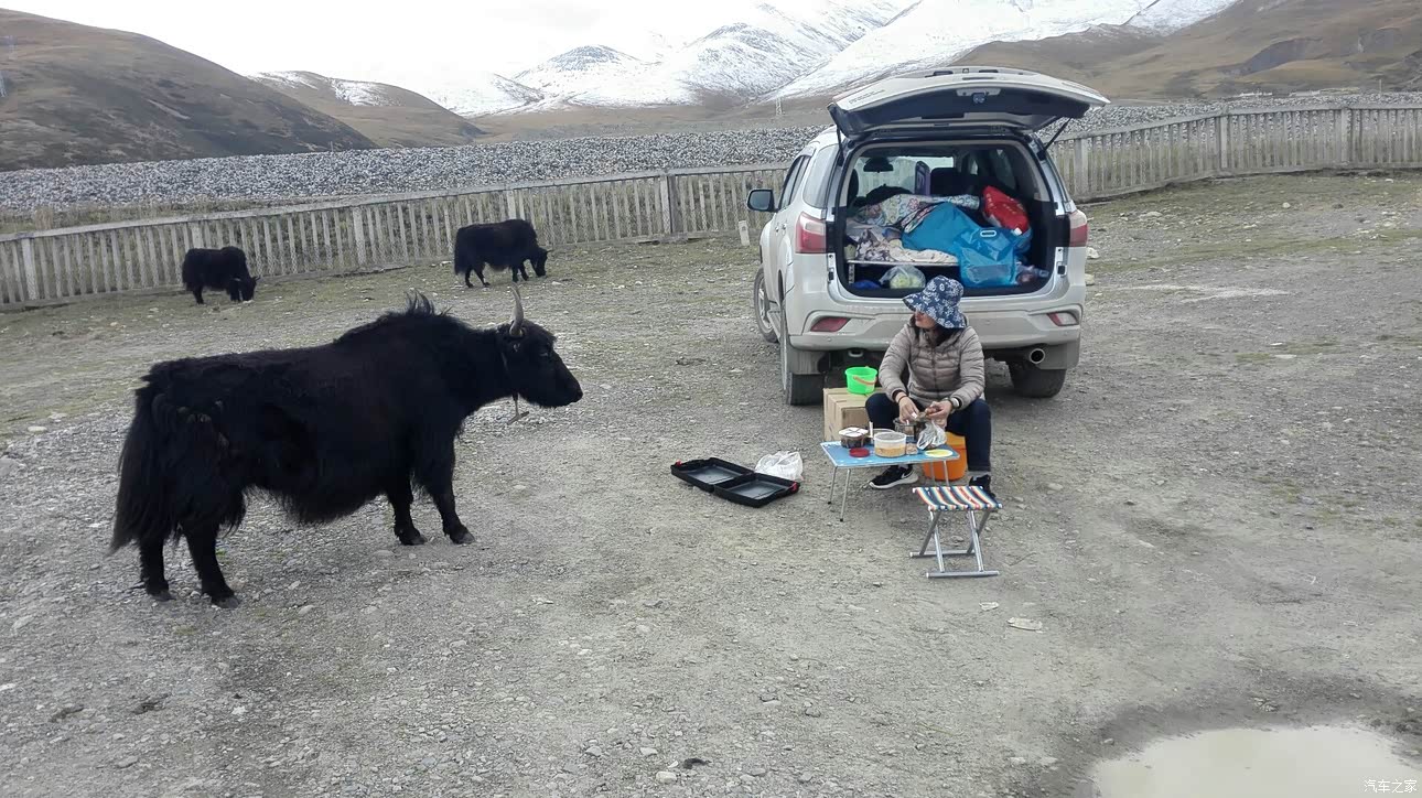 在那曲某地炖毛牛肉用餐