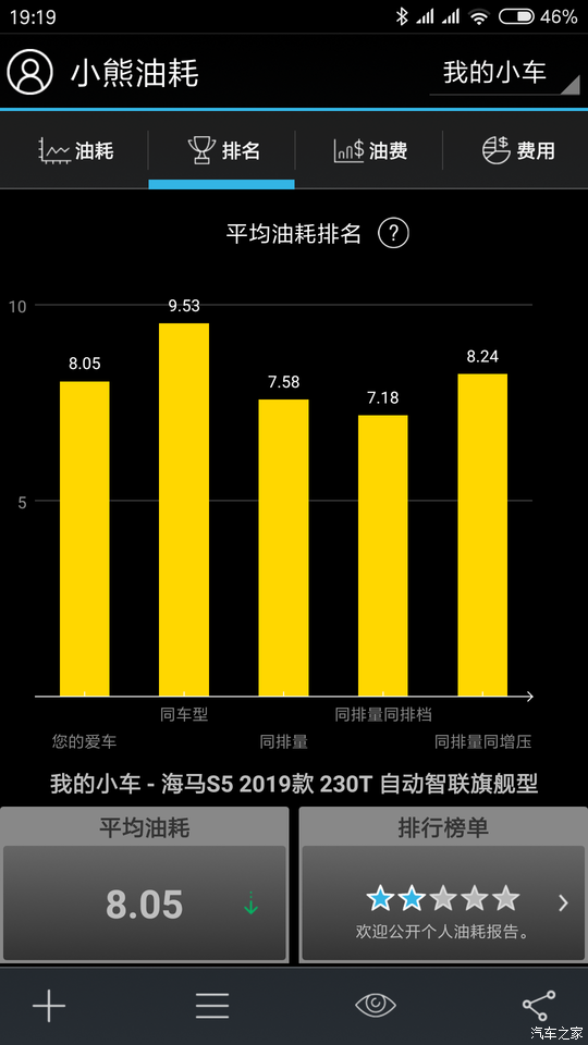 目前综合油耗在8.5左右,由于第一箱油没有在计划之内,这个是预估小熊油耗只记录了第二箱油到第三箱油刚加的油耗