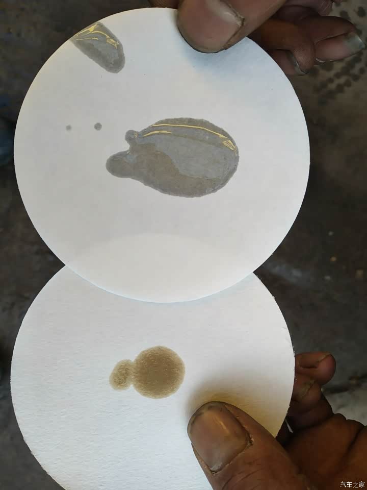 8万公里做了一次保养,加的全合成机油,可以一万公里再换,机滤,空滤,常规保养,其他正常没有动。这是换机油时,用滤纸做了一下新旧机油的对比。
