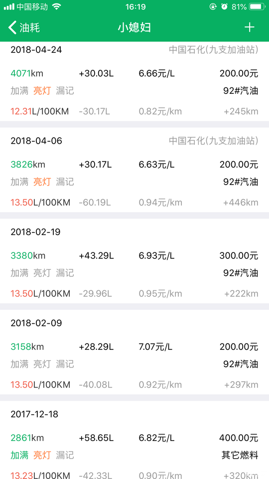 因为最近高速开的比较多,市区相对较少,且油价便宜,所以整体来说现在的油耗能让我开的起车加的起油。但是平均速度依然是21,不知道为什么老是不变。然后最近感觉人开车时候老是喜欢踩油门,比起以前来讲要激烈一点。