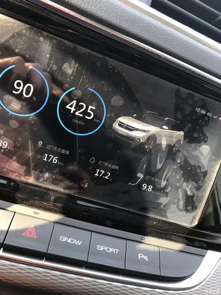 60升的油箱,百分之九十的油量,显示续航里程四百二十五公里,近七天综合油耗九点八。