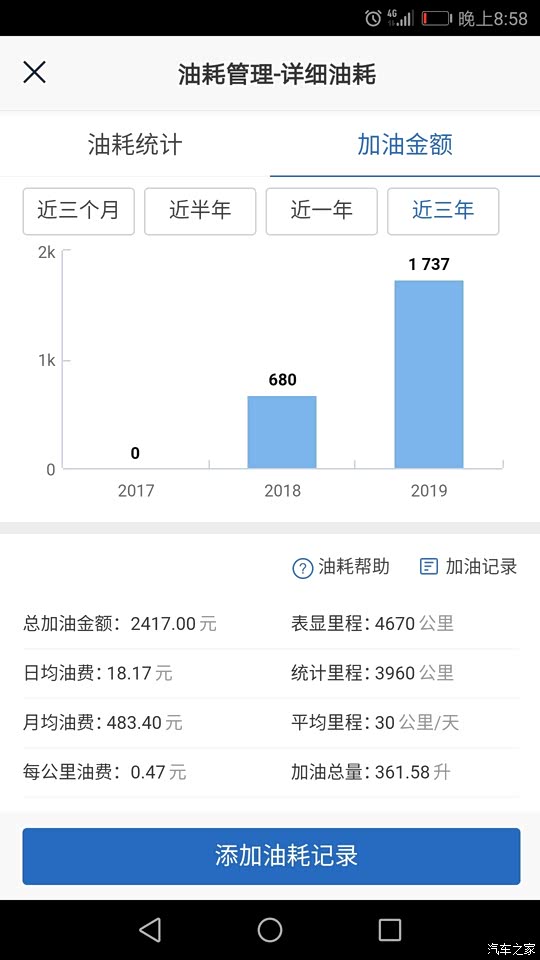 每次每个月我都在咱汽车之家记录这两个表是汽车之家得显示计算出来的图