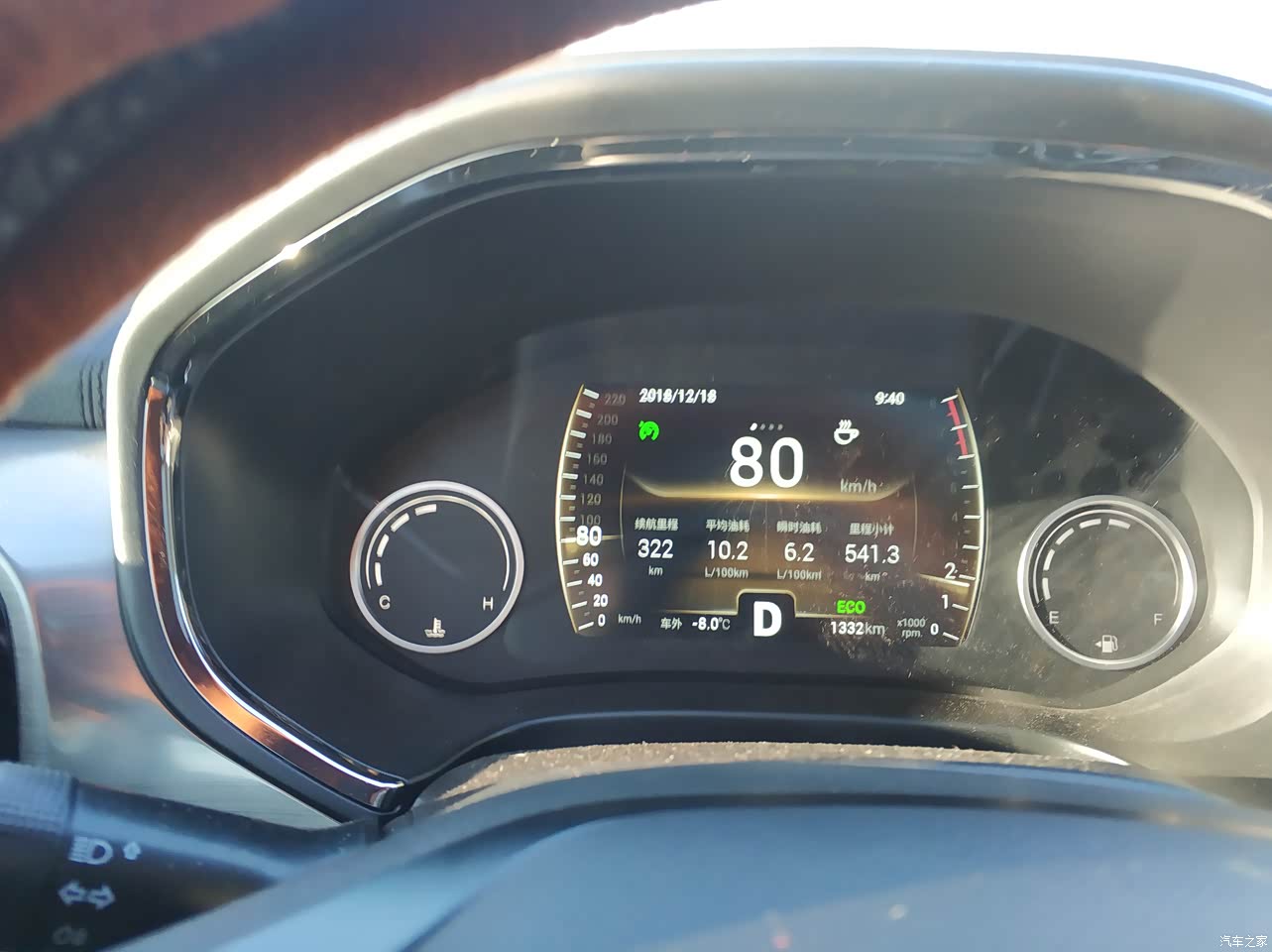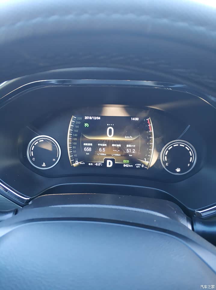 虎8这发动机是1.5T的,已经行驶1500公里。目前城市的油耗在10-12个之间,这个在正常范围内。因为哈尔滨气温在-10度至-20度,而且汽油是乙醇汽油(冬季汽车排气管往下滴水,天知道黑心油商到底添加了多少酒精),城市拥堵(哈尔滨冬季堵车全国第一,是名附其实的赌城),平均速度也就30码左右,赌车真的是很严重。每天热车起码5分钟。我以前开的1.6大众宝来冬季油耗表显是13个多。虎8这么大的车油耗和别人家的轿车相当已经够可以的了。开虎8一次去了农村。一级路限速80,表清0后,50公里跑出了6.5的平均油耗。这真的出乎我的意料了,我记得宝来也得7个多点呢。也咨询了一些本地车友,他们城市路在11个左右。所以我认为虎八综合油耗在8.5升油每百公里是正确的。