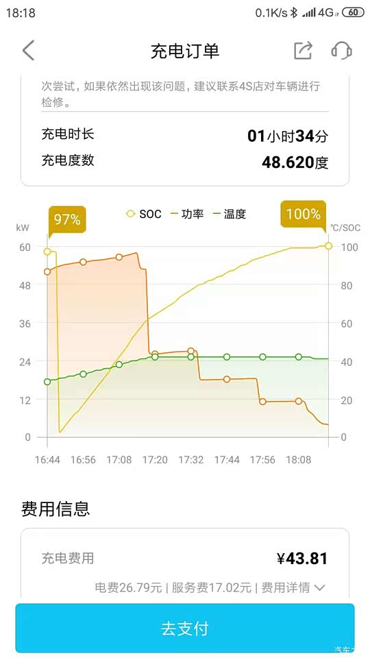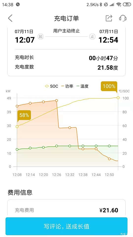 最近多用快充 没时间等,桩在原单位,去一次有点麻烦 最近一次充电用了一个半小时