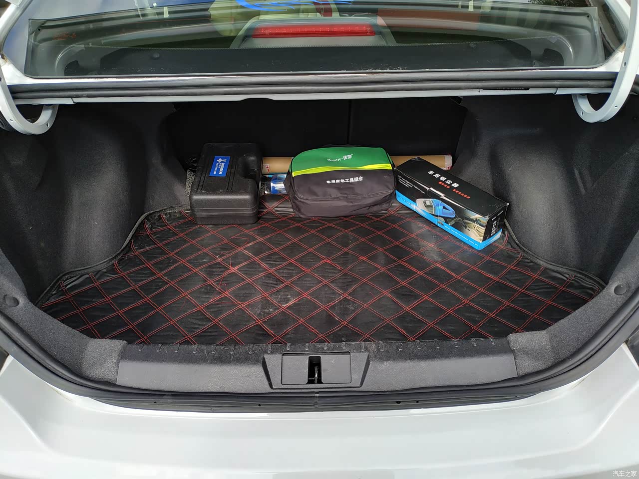 平常后备箱里面会放一些应急用的工具和东西,比如备用机油、机滤,简易工具、便携式充气泵等等以备不时之需
