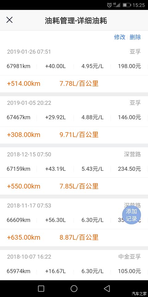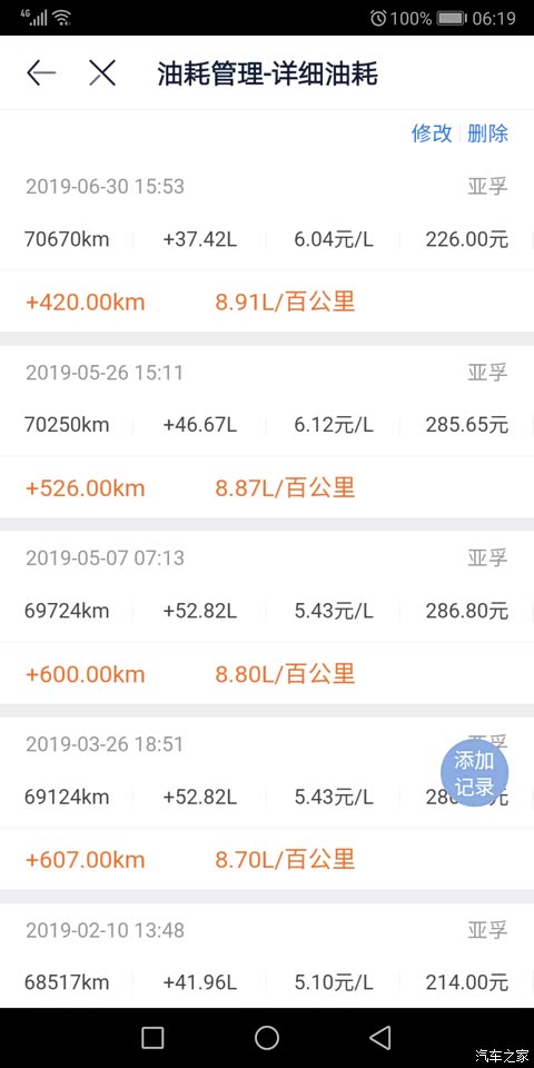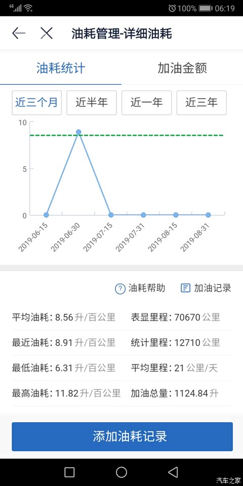 最近油耗很稳定,因为夏天开空调所以油耗都在八到九升每百公里之间。