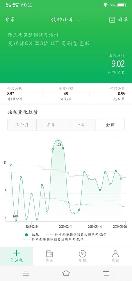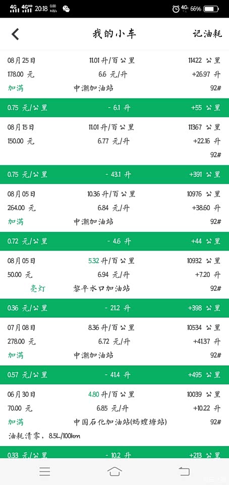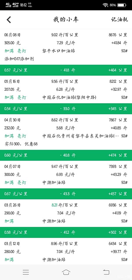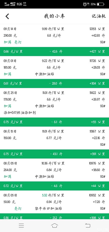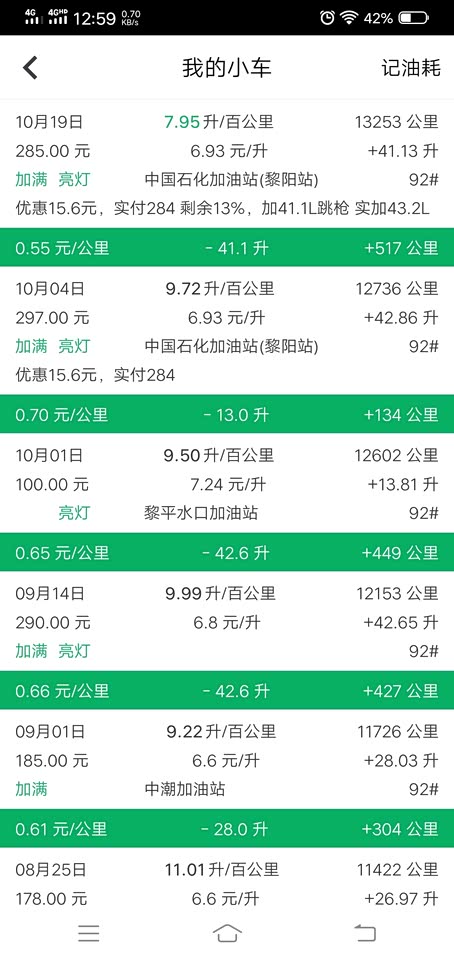 以前基本都是满箱油来测油耗,现在也懒得去加满油去测,买车一直使用小熊油耗来记录这个油耗,目前综合显示8.2升每百公里