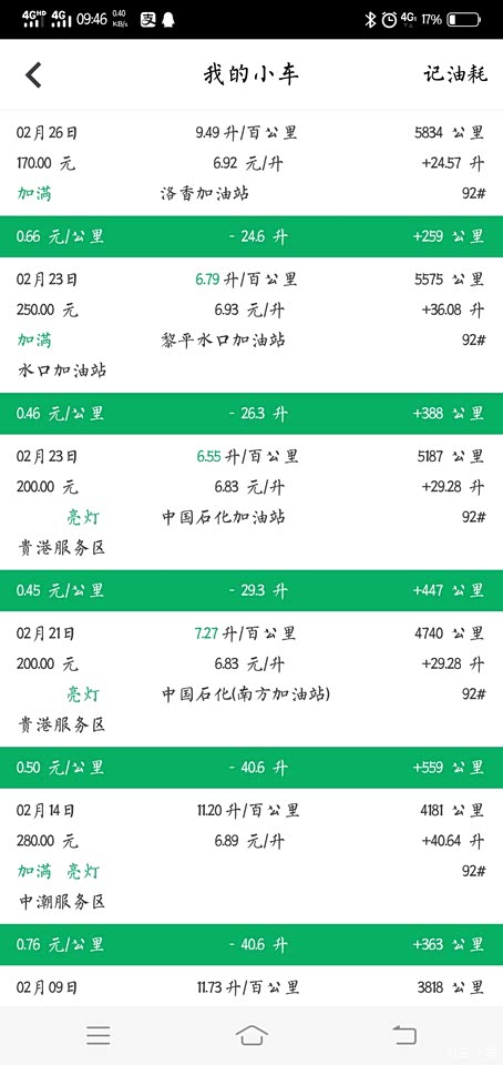 (提车、首保一直是矿物油!) 从提车到现在,共行驶了7400公里,加油4087块油,每公里5毛6左右,百公里8.2个! 回老家后,油耗清零! 目前走的路况50%高速,30%盘山路,20%市区路,50%路段开空调,综合油耗8.8左右! 市区油耗偏高,10个左右;盘山路11-12个油,高速、市郊路、国道5.5-6.4个,就油耗表现来说,市区油耗不是让人很满意!
