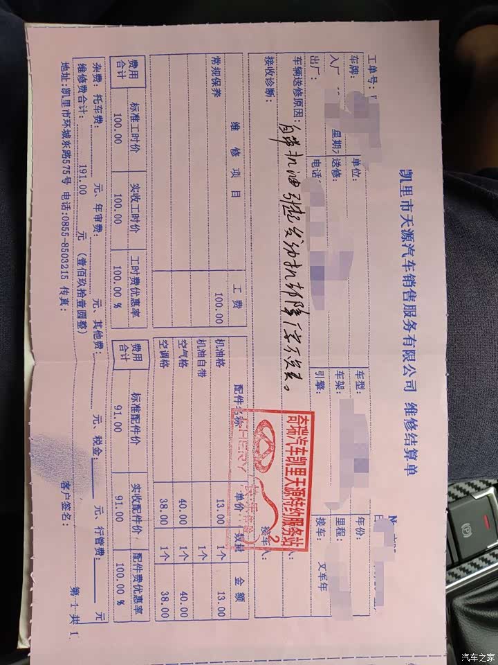 目前只做了一次免费首保,更换机油及滤芯,清理空气滤芯和空调滤芯