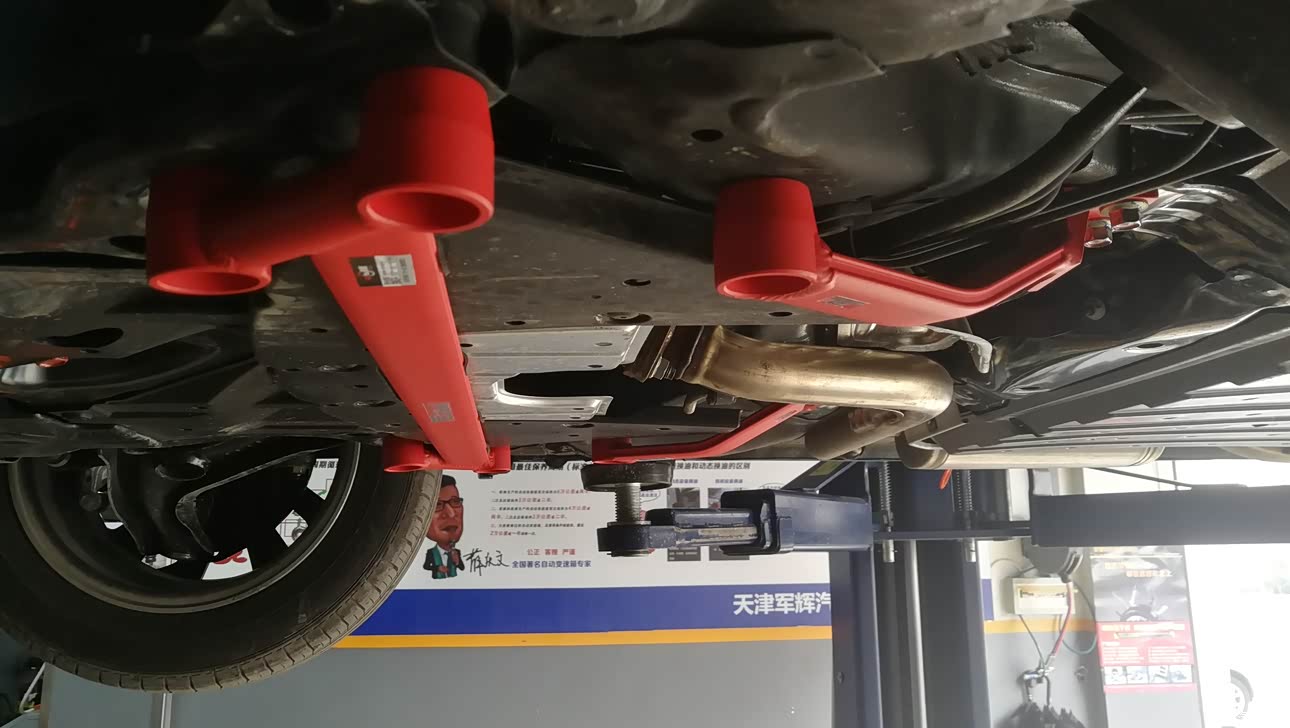 了解到底盘有一对加强板被减配后,索性自己加了一套某途品牌 红色的底盘加强拉杆。安装后 底盘的确变得“整”了,过井盖、坑洼不是那么松散了,但也是相对的提升了一下整体感而已。