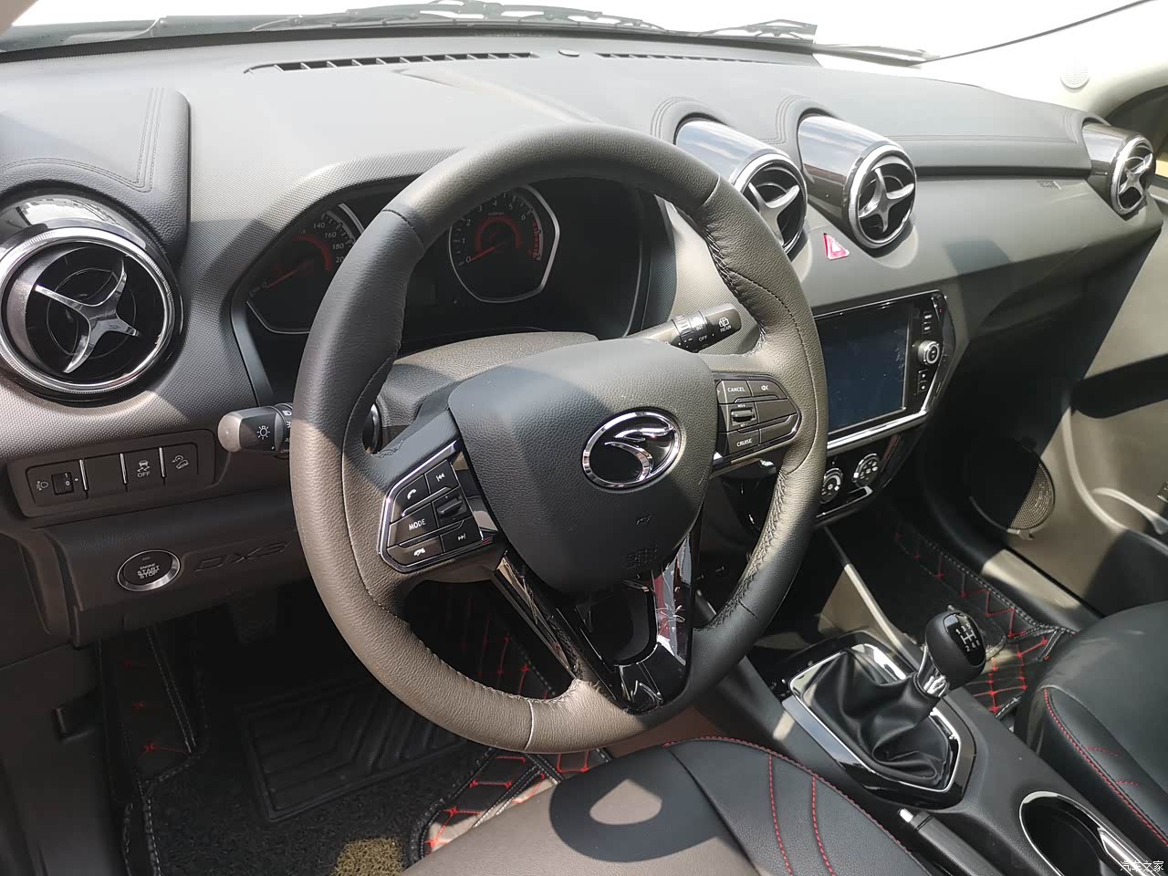车子里面的装饰简约而不简单,我最喜欢的是那炮筒式出风口,很上档次。真皮握手方向盘,开着很舒服,齐全的配置,让我不用再费心,中控大屏,应有尽有。只是部分内饰是塑料造的,看起来有点硬,有点掉档。