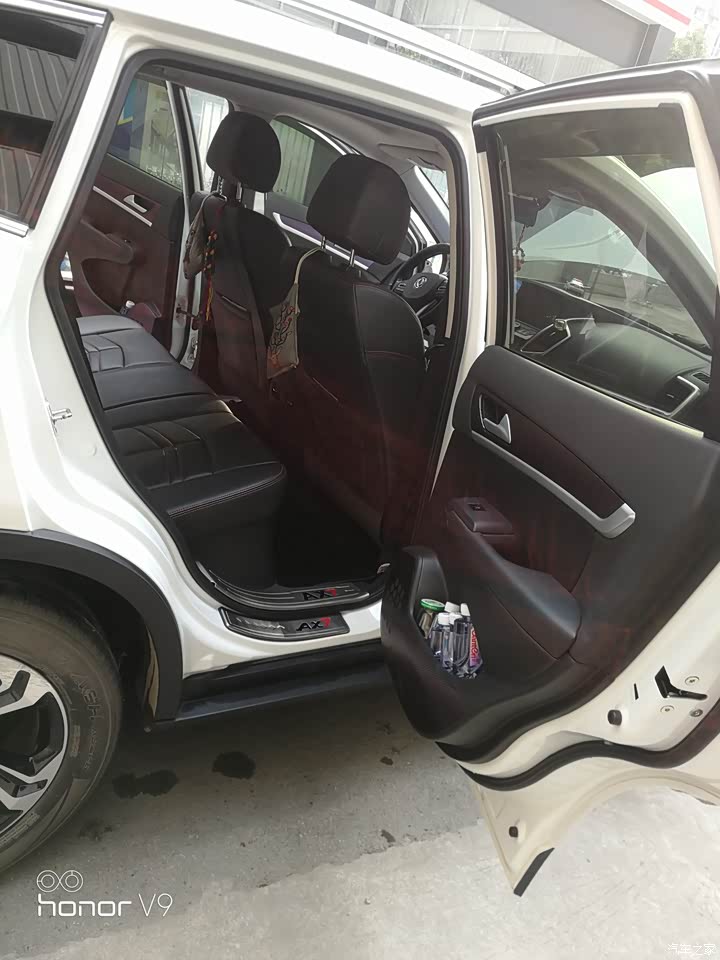 后排坐三个成人非常舒适,纯平地板是优势,很多车就是因为后排的凸起,极大的影响了后排乘客的乘坐体验,AX7完美的做成了纯平地板,非常满意!