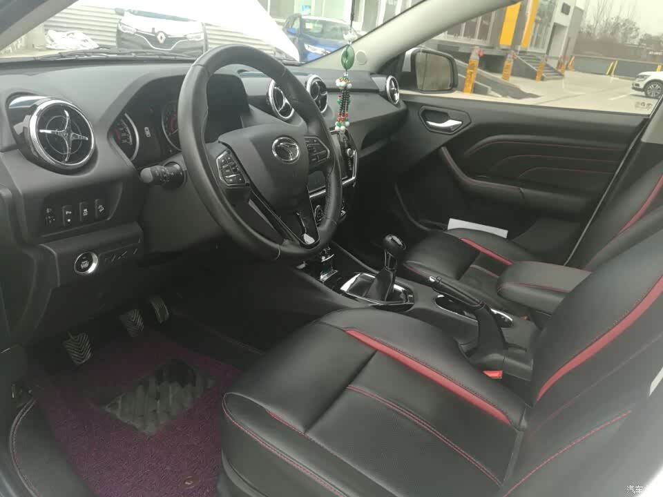 内饰也给5颗星,出风口设计的很好,很时尚,符合我这年轻人的审美观。导航也不错,大屏触摸操作,简单不费劲,仪表台设计的也不丑,座椅皮子包的也没什么瑕疵。