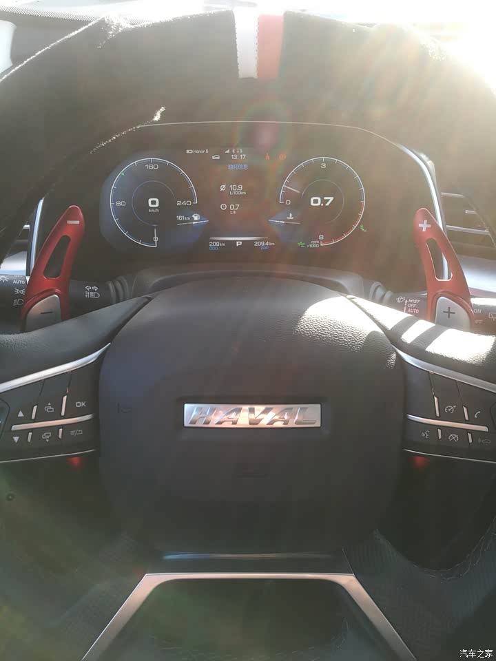 车的整体感很好,不散,怎么形容呢?有的车就像一个车壳子里装了好多横七竖八的积木,你一晃它也哗啦哗啦晃,你就生怕哪下晃不好掉下去点啥,H6呢,就像乐高,你知道是拼接的,但你来回甩还是一个整体。方向盘指向清晰,虚位少是少,不是没有,三挡力度调节我没感觉出来差别。油门,刹车踏板都有些软,调教偏舒适,不像我家那位的思铂睿,踩上就往前窜,一点不听话!