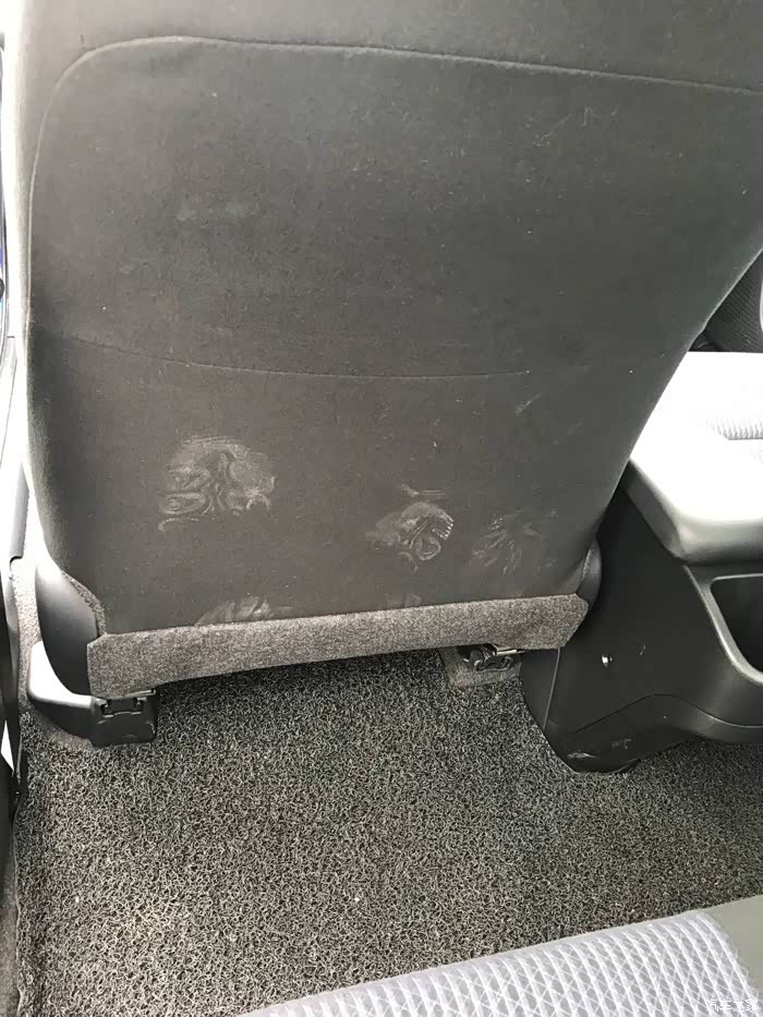 这个编织物的座椅,虽然是黑色的但是很难打理,你们看这个后座的的人不小就很容易弄上脚印了