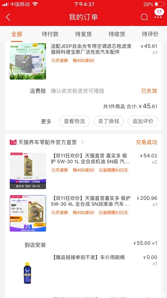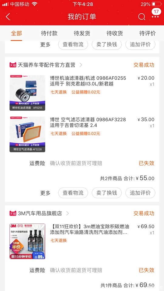 刚做了次保养!换了机油机滤,空调滤芯空气滤芯!不要听4s的过度保养!我已经不在4s保养了,哈哈哈😄对,加了瓶汽油添加剂,我在车跑到2万公里时加了一次,添加剂每个车主都有不同看法!我觉得挺好用就加了。机油机滤,空调滤芯空气滤芯都在某宝旗舰店掏的!一定要让自己相信是正品!找了个汽修厂给50服务费,他们帮换的机油机滤,空气滤。自己动手换的空调滤芯!