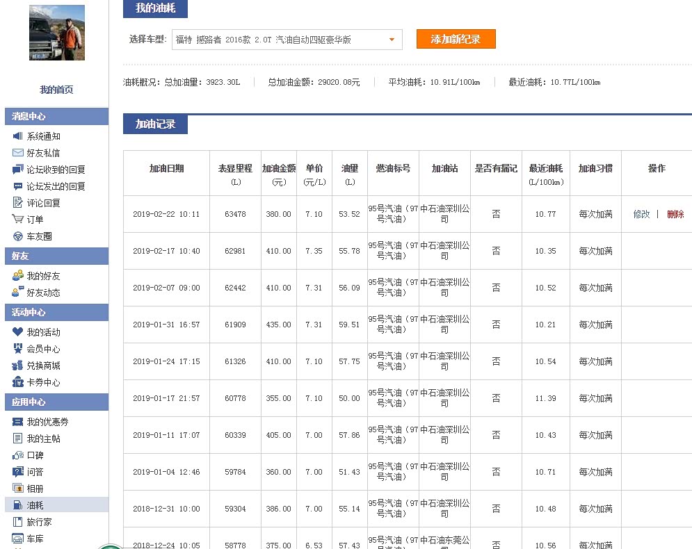 我的车子目前差不多2年,行驶5.98万公里,在汽车之家每次加油记录了1年的加油记录,平均油耗10.90升,应该说是非常准确的,高速路与国道各一半。相对来说油耗不错,以前手波2.4帕杰罗也要12.5升
