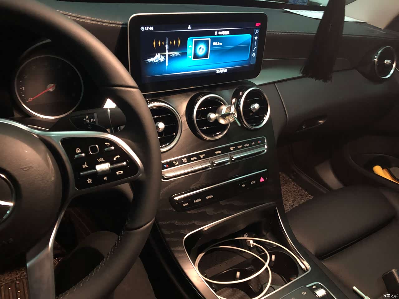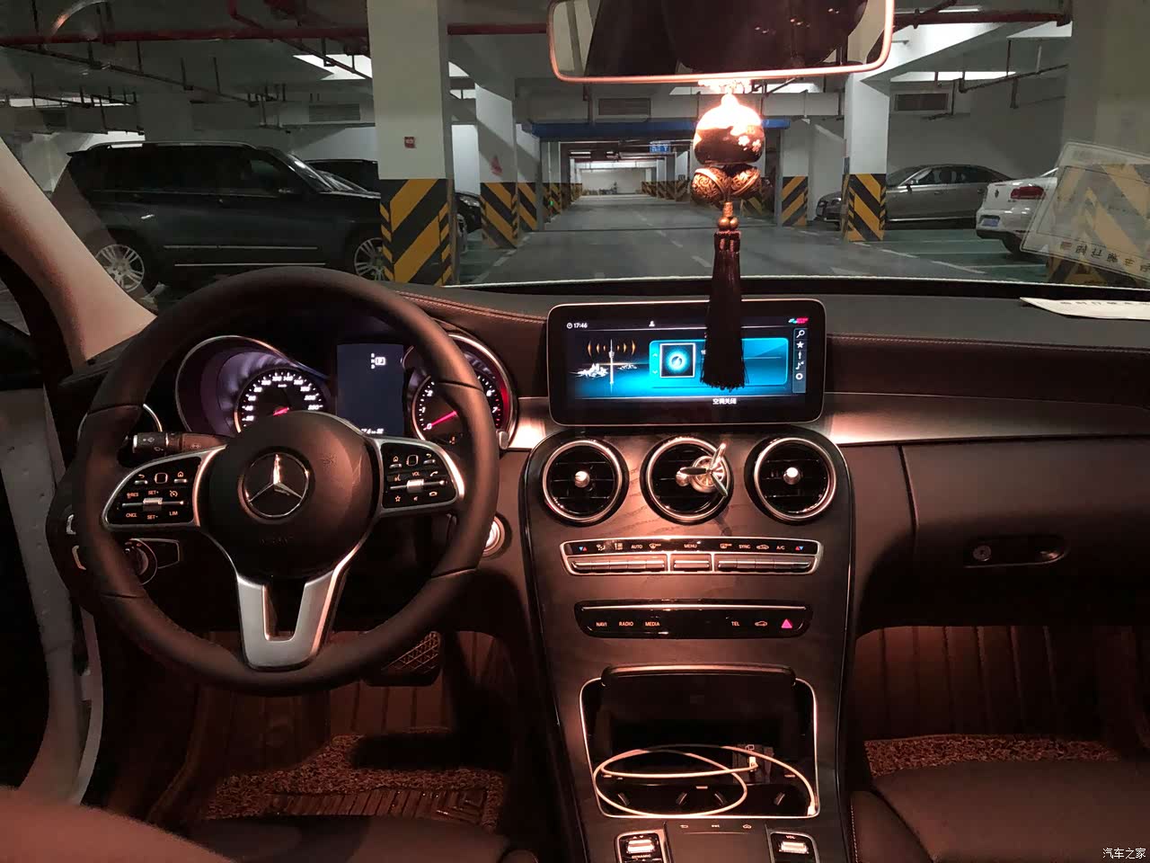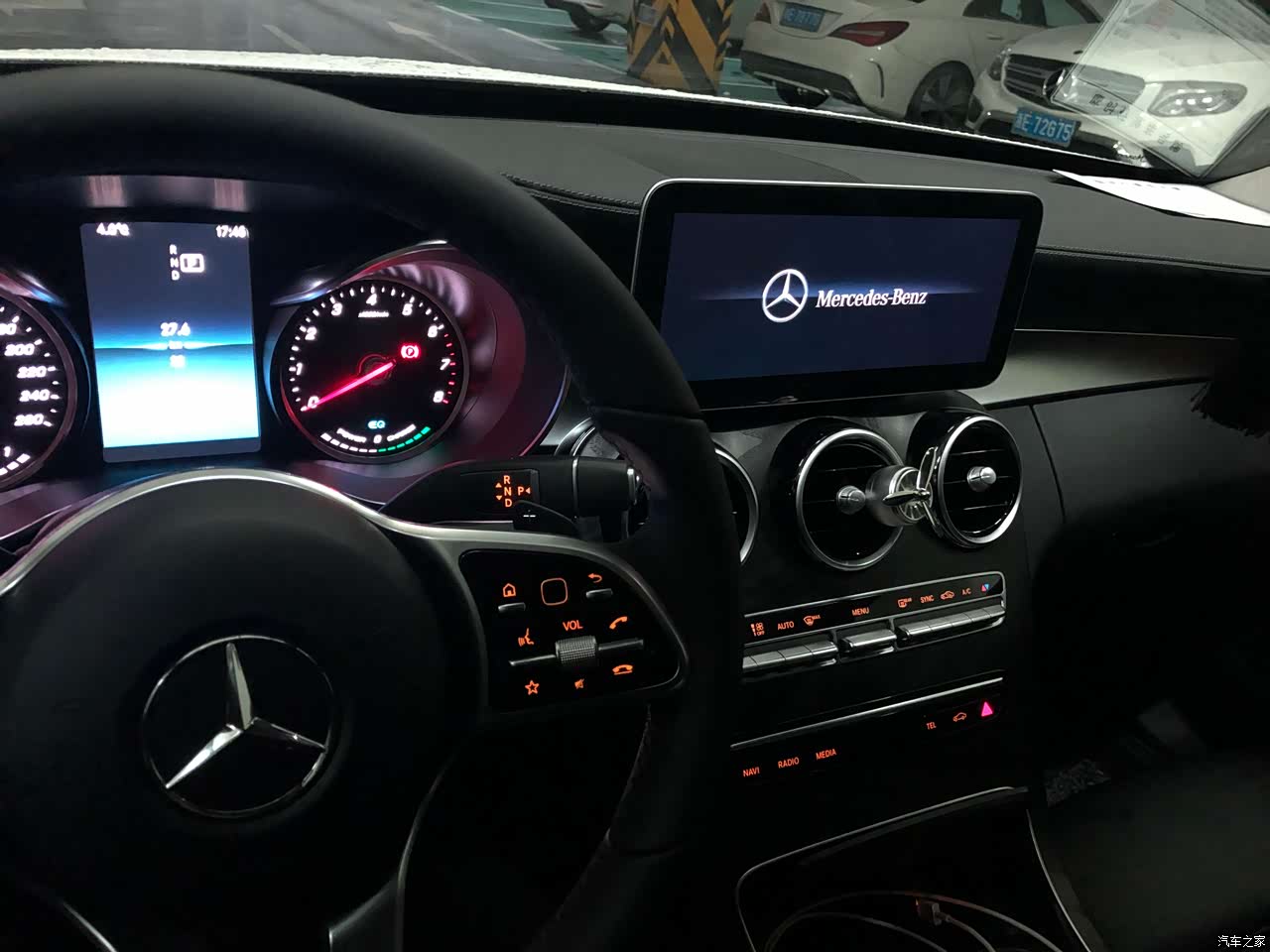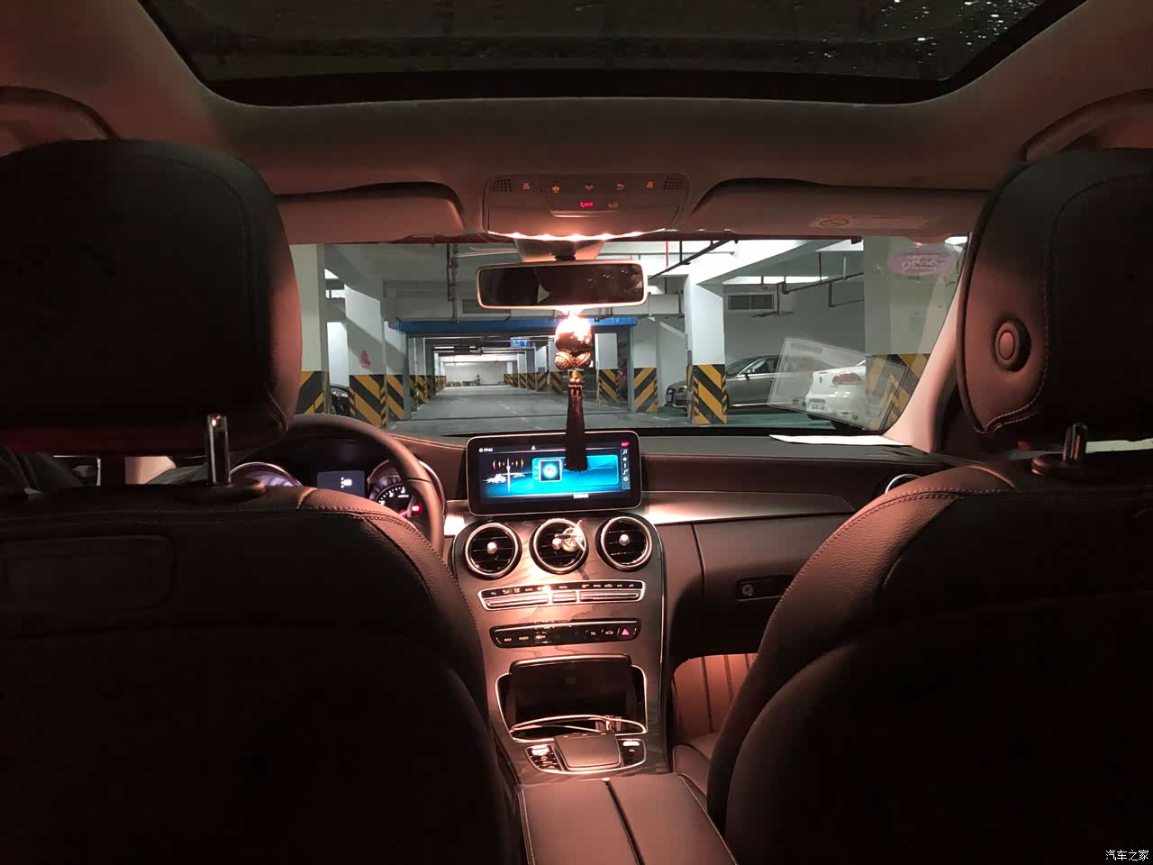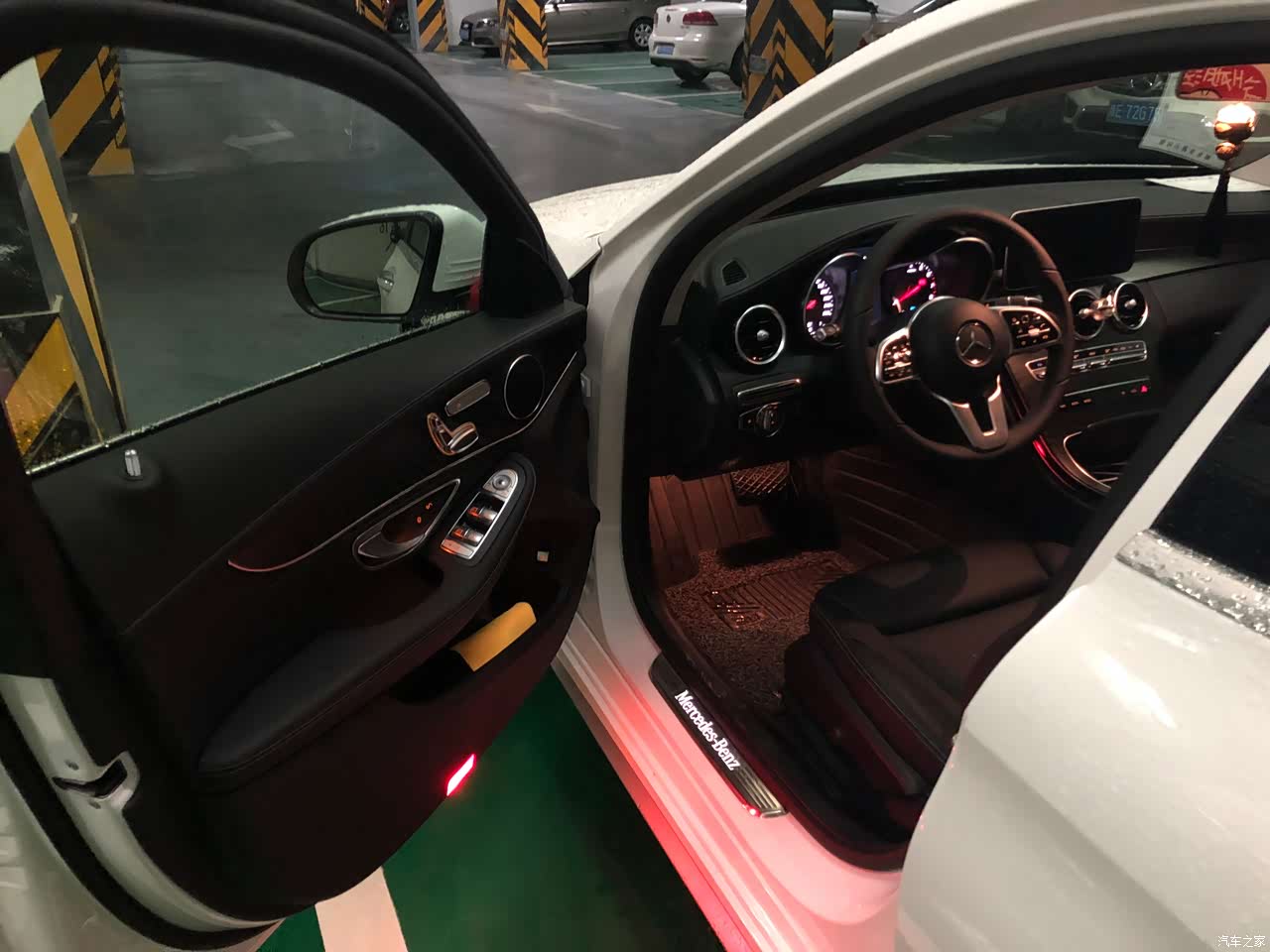 奔驰的内饰其实不用多说,这也可能是在我心中最终打败3系的主要原因吧。打开车门,就看到醒目的“Mercedes-Benz”LED灯似乎就已经感觉到豪华的气息,四个门处都有,夜晚在灯光暗处的路边,当你打开车门时显得格外亮眼。刚进入车内就迫不及待地拨弄着各个按钮。空调调节按钮手感很棒,中控触摸板把玩个一会儿就全部熟悉,灵敏度适中,没遇到过误触情况,不过我还是习惯使用方向盘去调节,更加方便。至于液晶仪表盘,我暂时还没有装。不过目前的标配仪表盘实际看起来,要比在网上图片大很多,相信选装了液晶仪表之后显示效果会更棒。