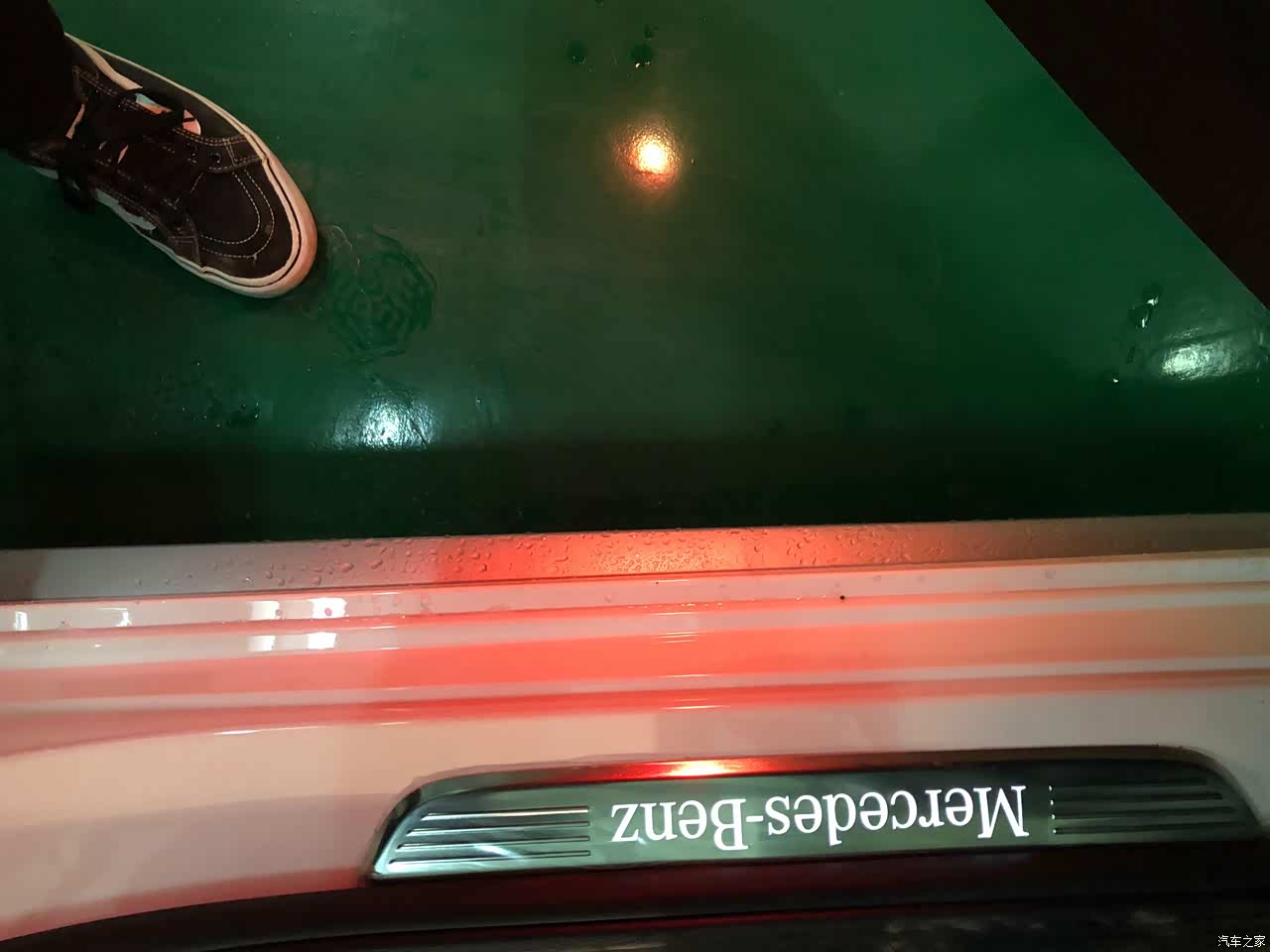 新车上路本来就怀着小心翼翼的态度,故障问题并没遇到,但还是不可避免出现了“小事故”。先是把车停好人离开,后来就发现车左后门有个小划痕,还是比较明显的,估计是旁边车门打开撞击所致。第二次是在自家车库上倒车入场,然后被90度位置的cla倒车出库撞到车右后门,不是很明显。