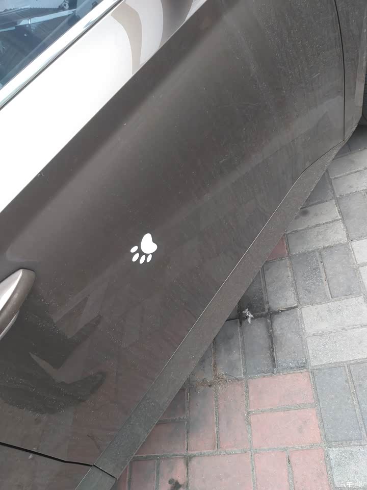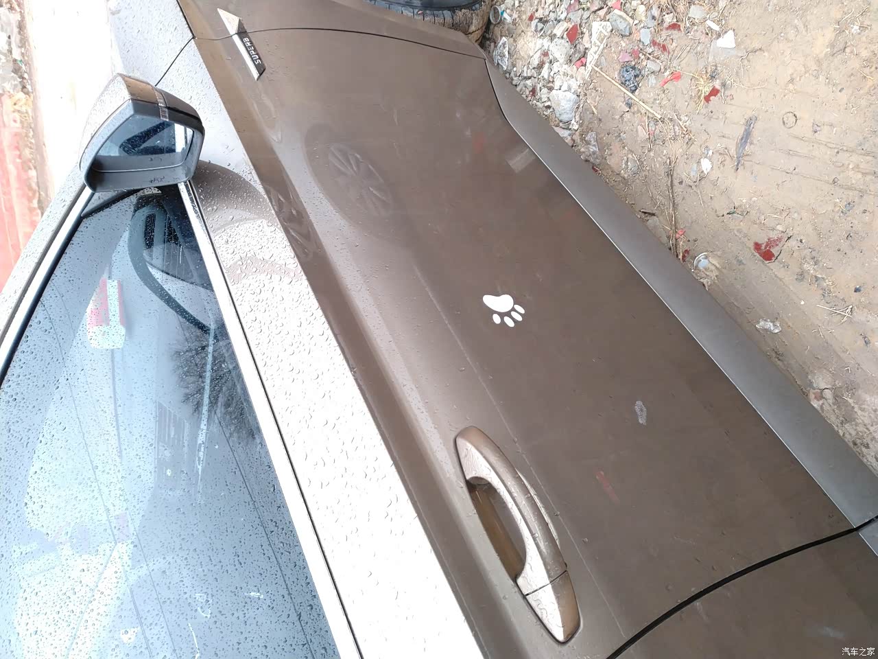自己在京东上花20买了块儿贴纸就那么贴上去了,正好把右边车门这的划痕也遮一下。。效果不错,还行。