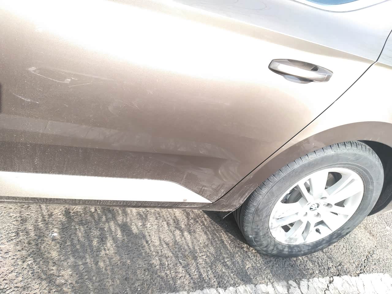 昨天下午回家的时候碰到了熟人,一边聊天一边拐弯,正好拐角停着辆普桑,把左后门刮了,普桑啥事没有,郁闷。。找了个无痕凹陷修复,花了1个多小时,大体恢复原状了,但是仔细看还是能看出来不平整。