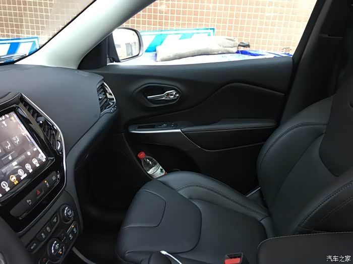 内饰感觉虽然用了钢琴面板,但是感觉缺了点什么,不过还可以接受,档杆有点丑,要是能用电子档杆就好了,我是不是要求太过分了哈哈。上款座椅上都在Jeep标,现在新款反而没有了。