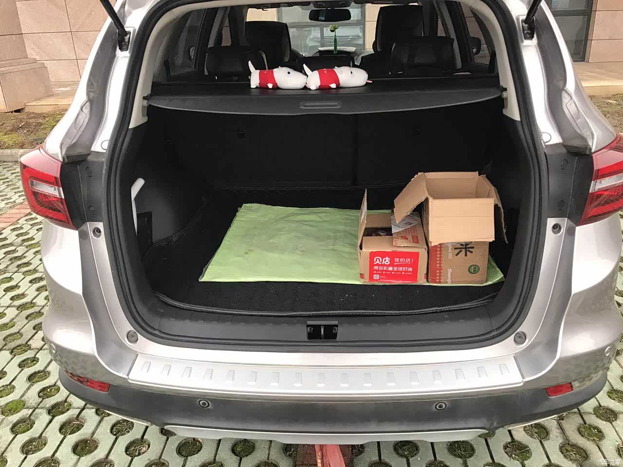 2018款风神AX7后备箱尺寸进深为990-1740mm宽度为1070-1250mm度为840mm后排座椅放倒之后空间提 共500升 板纯平坐个成年人没压力内饰储物盒还 随手放些东西什么还