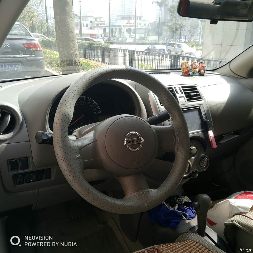 方向盘比较准确,握在手里感觉有些单薄,自己加了一个手缝的真皮方向盘套,再握起来感觉舒服很多,开汽车来对操控也更加有信心,就是缝上去的时候真的很花时间,大概用了有大半个小时,不过搞好之后真心感觉不错,也很有成就感。