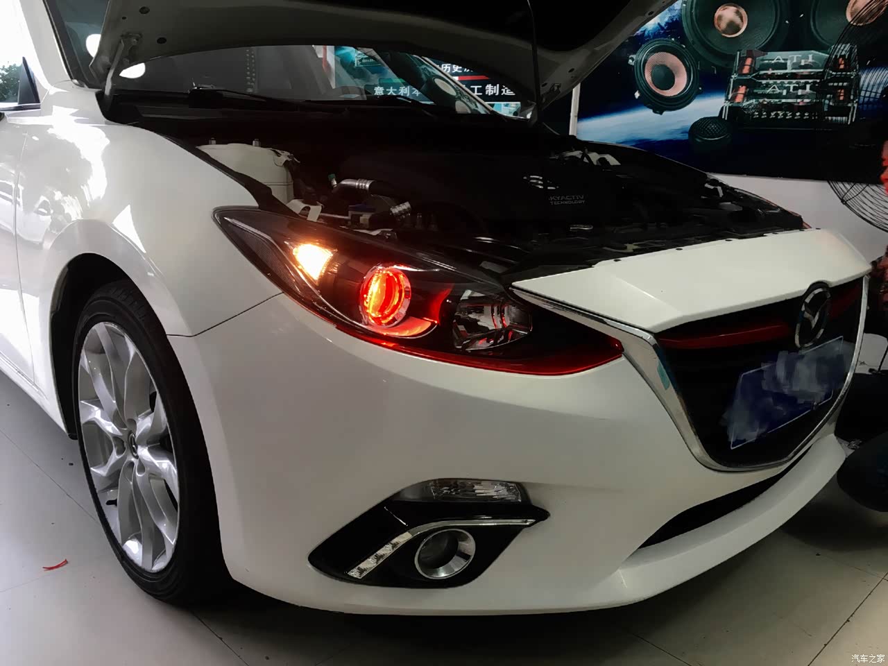 原配车灯有点蜡烛 特别是在下雨天 所以提了车开了大概1个月就去改灯了 顺便加了个恶魔眼 但是恶魔眼啊...我基本就没有用过 有点鸡肋 哈哈 不过装好的当时还是挺喜欢的 红色的恶魔眼和车的特别配。