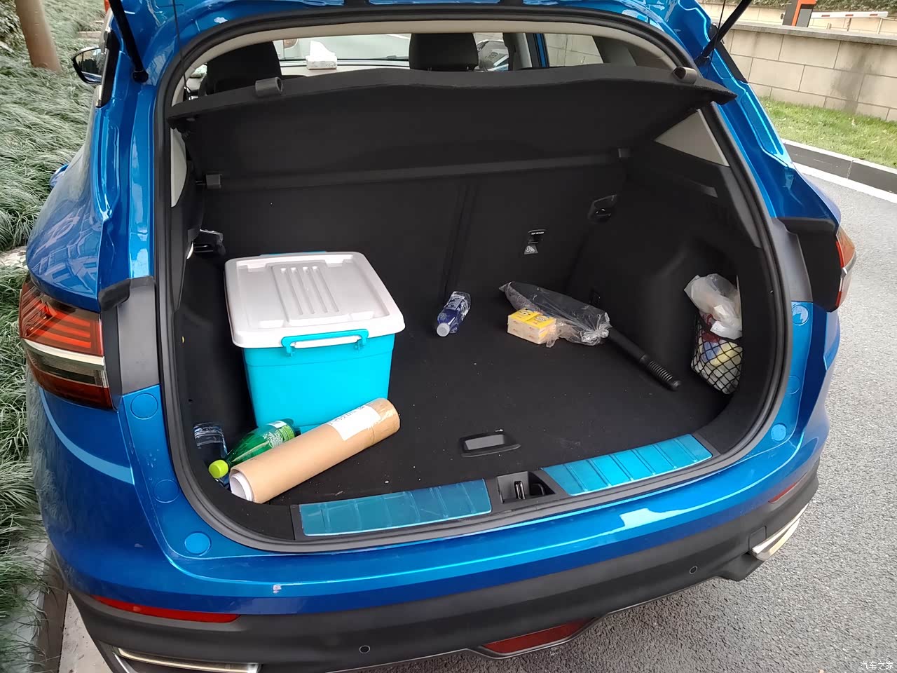 不管前排还是后排,坐进去都有空余的空间,不拥挤,不过后排坐三个人就感觉拥挤了。 后备箱空间平放两个旅行箱也没问题。