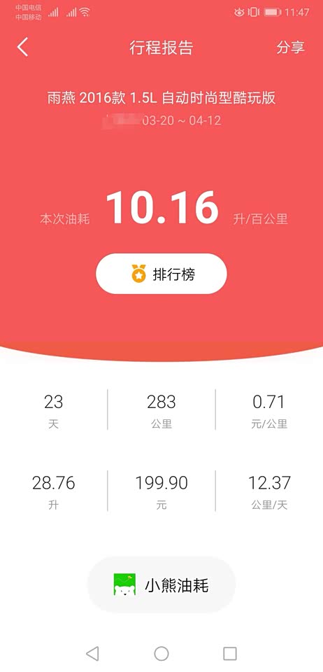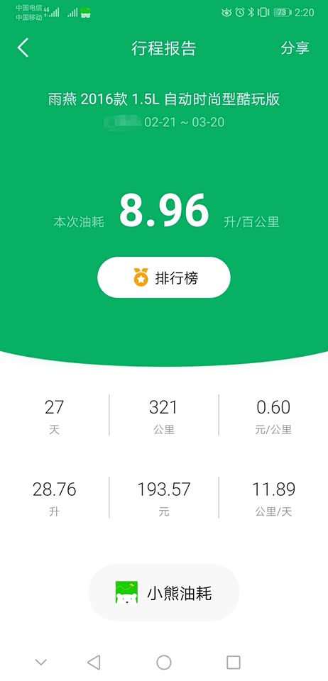 比新车油耗降了些,希望油耗越来越低,据说做完首保会好很多能到6-7个油,希望吧!