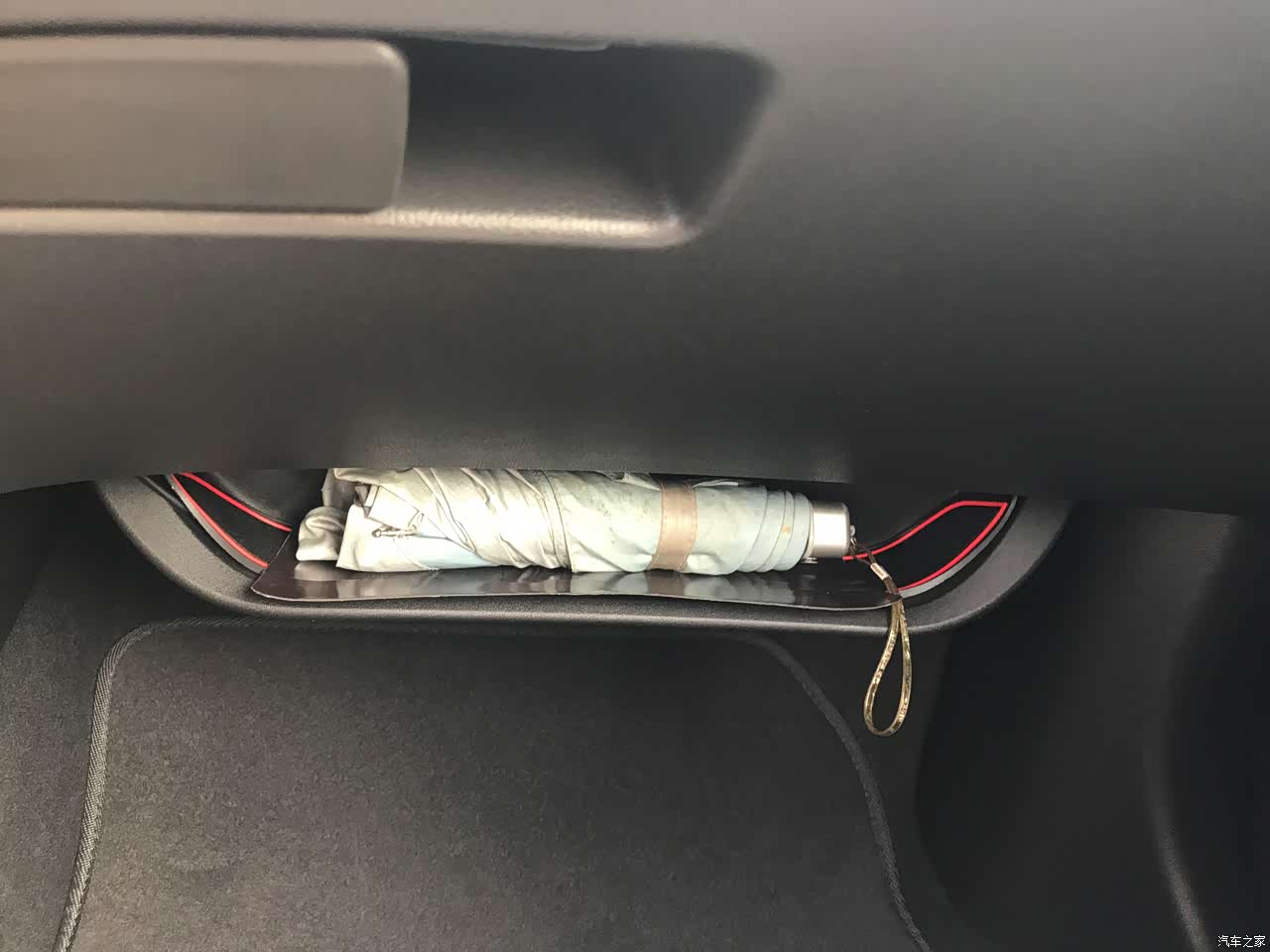 后备箱及后排空间比较大,储物功能还可以。副驾驶还有一个伞架盒