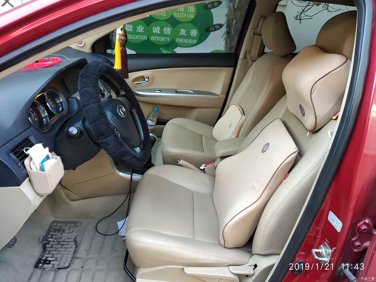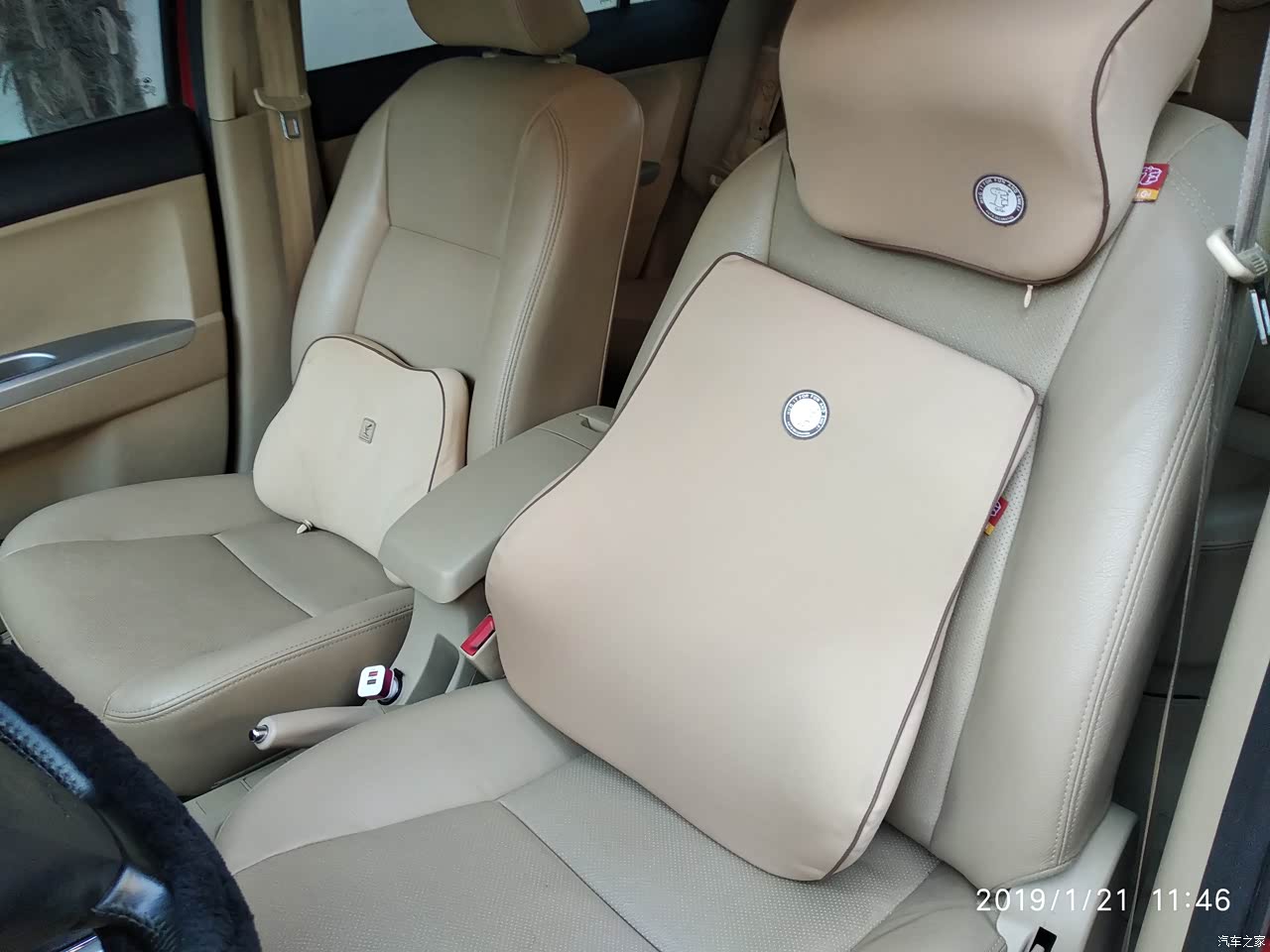 主驾座椅带高低调节,不过我一般都放最低。套了几年的套子,现在终于不套了,露出了本来的皮座椅。