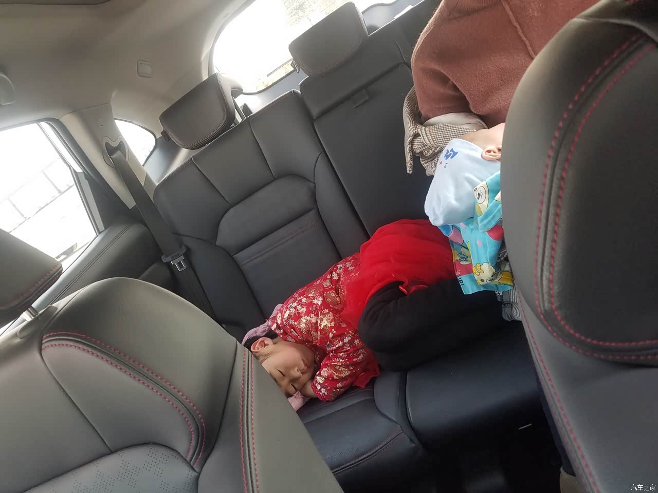 后排空间大孩子想怎么睡就怎么睡。