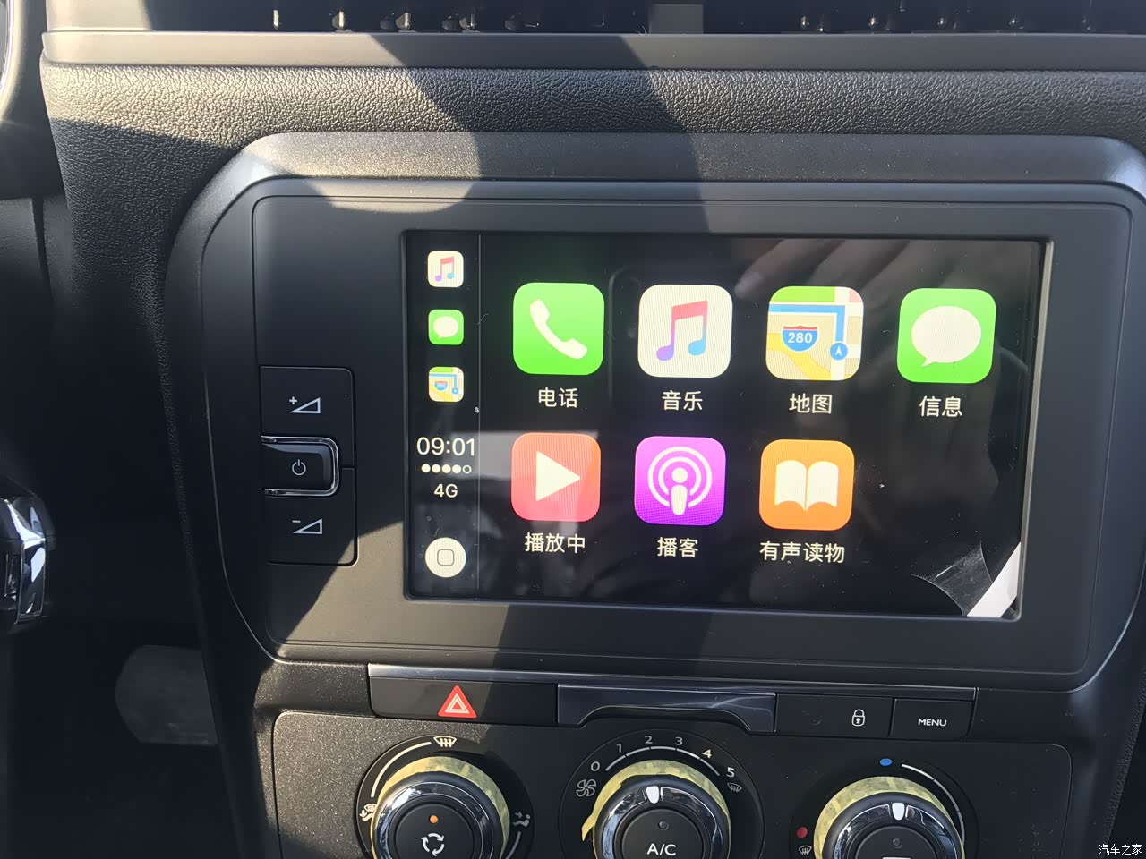 连接苹果手机后的界面,方便实用。