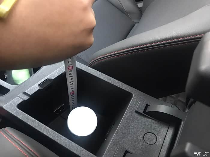 中央扶手箱19厘米深,放了一罐娃哈哈八宝粥罐演示