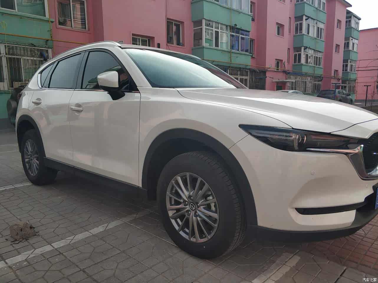 第一,外形绝对是颜值担当,无愧于“魂动”这个词,虽然不是主打的红色,但色泽也绝对漂亮,霸气的中网,非常有攻击性,犀利的LED鹰眼,超有神,也验证了“眼小聚光”这句话的准确性,浑圆的屁屁很性感,总之,虽然CX-5定位为紧凑型SUV,但是整体外形也很富有运动气息,符合我不服老的性格。\n\n第二,操控更是没的说,充分彰显马自达“人马一体”的理念,低速的时候方向盘很灵活,手感很好,指向准确,而高速的时候又很稳重,防止过度灵活而产生的偏差。风琴式踏板脚感舒服,只要给上油,动力源源不断,换挡无任何顿挫感和滞后感,深踩油门降档提速迅猛,变速箱和发动机能够充分体会驾驶者的意图。\n\n第三,截至目前,提车两周(由于是春节放假,媳妇家在外地,需要外出串门,因此市区内略微少了一点,高速和国道偏多)已经跑了1000多公里,加了三次共计600块钱油,当前续航里程还有500公里,屏显平均油耗8.1。已经很满意了,毕竟是自重1.6吨的车,不过据说首保之后还能降点。\n\n第四,关于座椅和空间,这些年开过的车不少,但是家中原来的小白是主力座驾,不过拿小白跟大白做比较呢,显然是不合适的,毕竟价位相差太大了。单从大白驾驶位来说,很有包裹性,符合运动元素,而且驾驶不累,能充分体验驾驶的乐趣。后排空间足够家庭出行使用,后排坐三个成年人并不显得怎么拥挤,可能是我们家没有太胖的人吧,而且后排座椅可以比例放倒,放倒后与后备箱基本持平,外出旅游的时候孩子可以躺下来休息。后备箱空间也足够用。\n\n第五,关于灯光,本人对灯光要求比较高,当初刚买小白不长时间就把蜡烛泡改成了氙气灯。大白这聚光的LED更是一步到位,无需再改,夜晚开车再也不用担心看不清前路了。