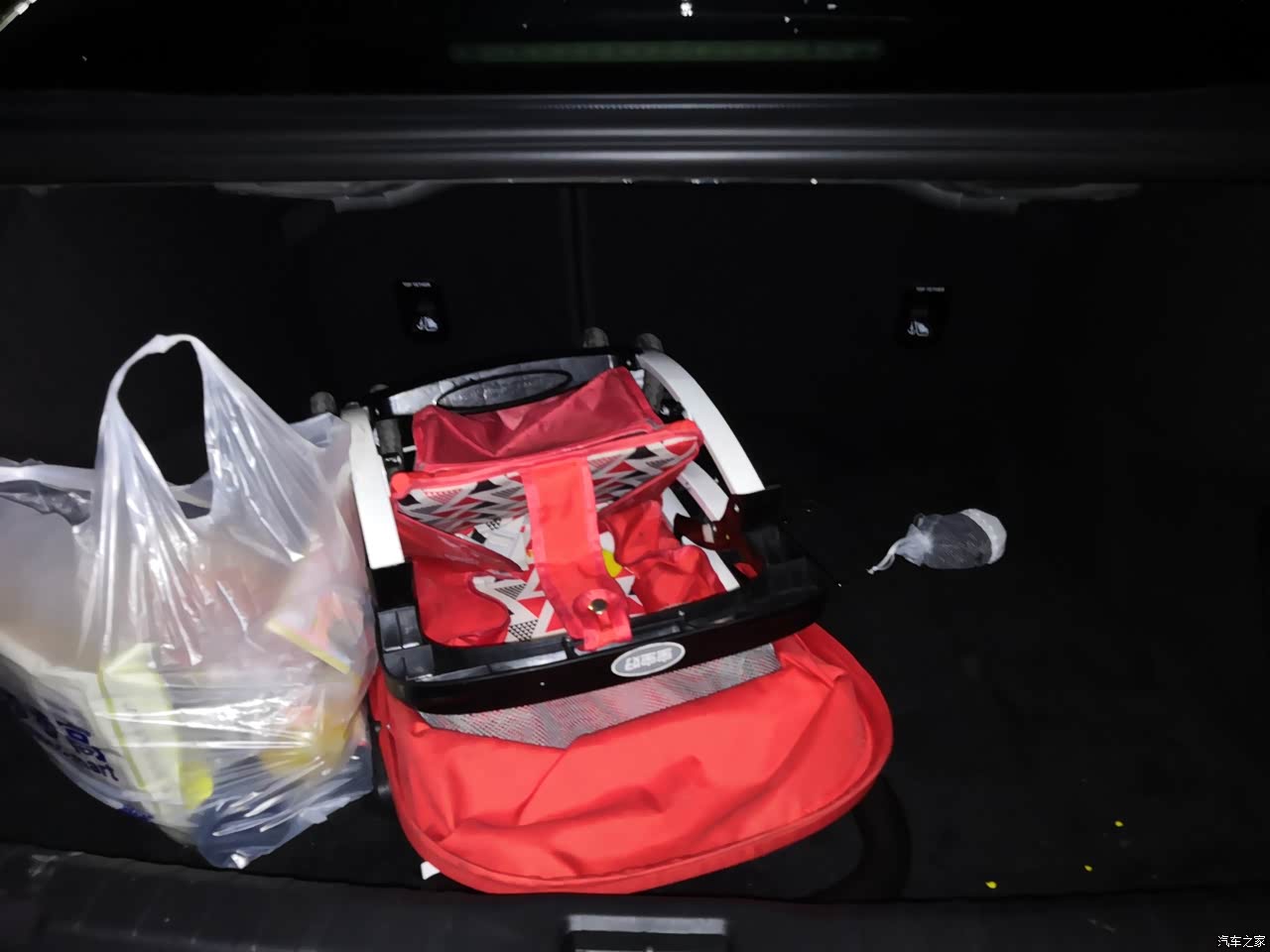 后备箱放了娃娃椅和一大包东西后还很空