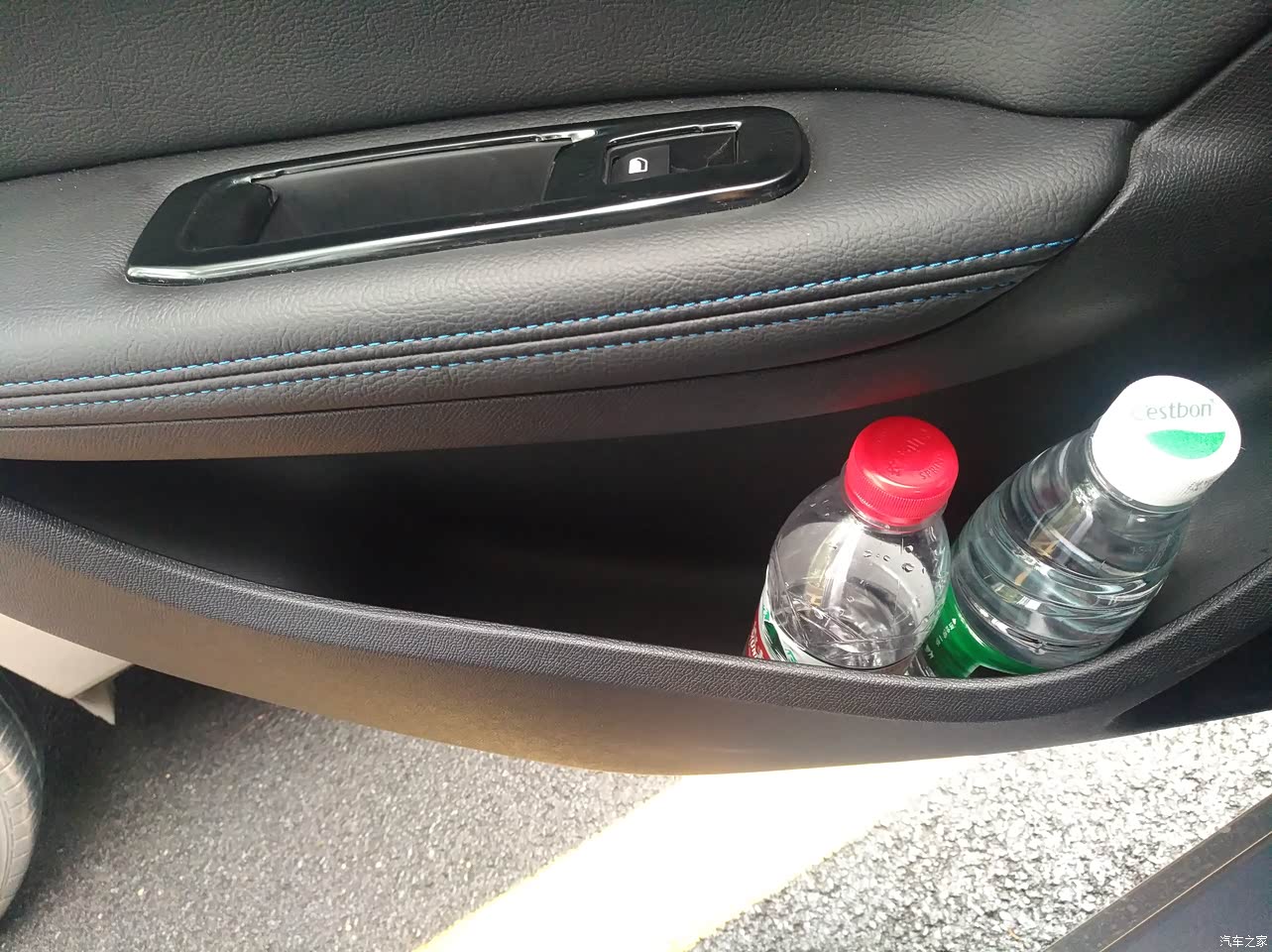 扶手箱:有点小,有点矮,没有起到扶手箱的作用,空间不大,也不能支撑右手小臂。车门储物格:很大、很深,放3瓶500ml矿泉水无压力,很好用,这点不错。副驾驶前的储物箱:很大、很深,是我见过最大的了,打开可以当做副驾驶的餐桌使用。(里面安装了一个小夹子,正好放说明书,保养手册)遗憾:没有眼镜盒。