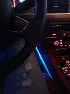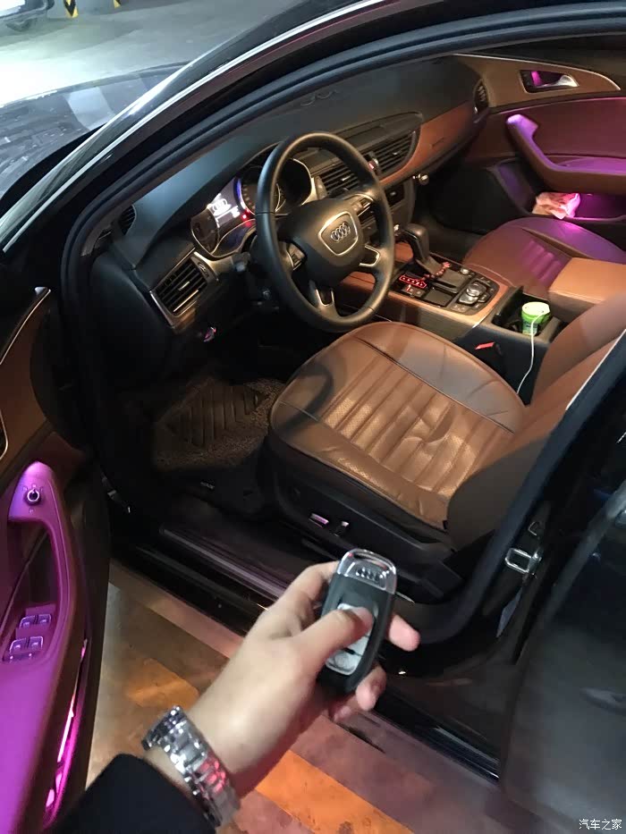 开门见山,对内饰就三点!我少给一颗星的原因是没有车内氛围灯和中控没针线缝线还有那个老气的方向盘!勉强仪表盘加点分吧 大爱中间的液晶屏! 本人选择棕色内饰 可能就是黑色感觉单调吧! 但是我之前选车对比的!必须要有氛围灯... 4儿子店氛围灯加装太贵了,最后去外面改装店加装 也是和4儿子店一样的(等等见图)有时间一定换运动方向盘或者淘宝已经上架的新款a6方向盘。 和新款a6不同的是,感觉新款中控就是个指纹收集器!而且点空调什么的要看中控屏幕操作 这种传统机械按键行车时开空调都可以把按键背下来盲点了!搭配木纹,内饰也能用中规中矩和商务来形容。 总的来说 18款的内饰还算满意的。
