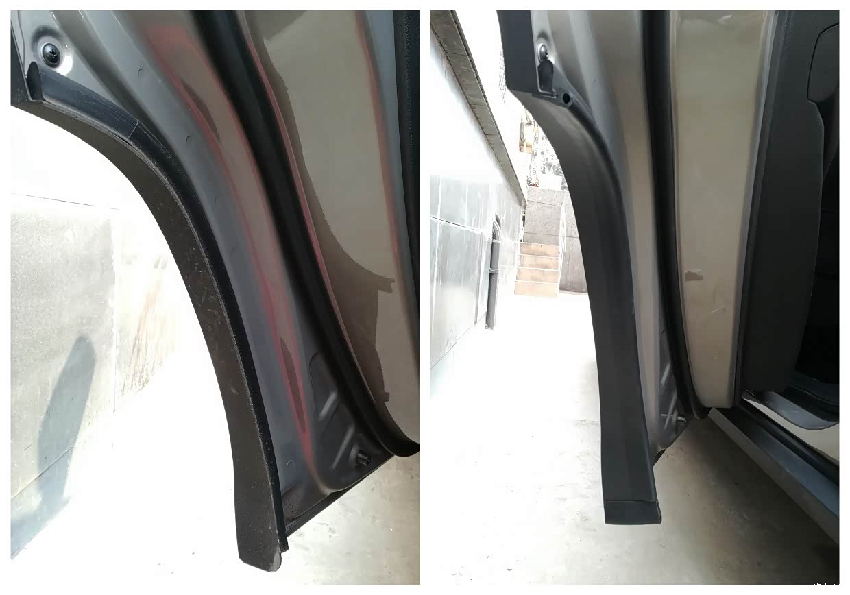 S4为了适应轴距和内部纵向空间,更为了方便后排乘客进出,将后门设计成半轮弧导致雨水路况后门处易甩污。几经思量采用了改装办法规避了这一缺陷。