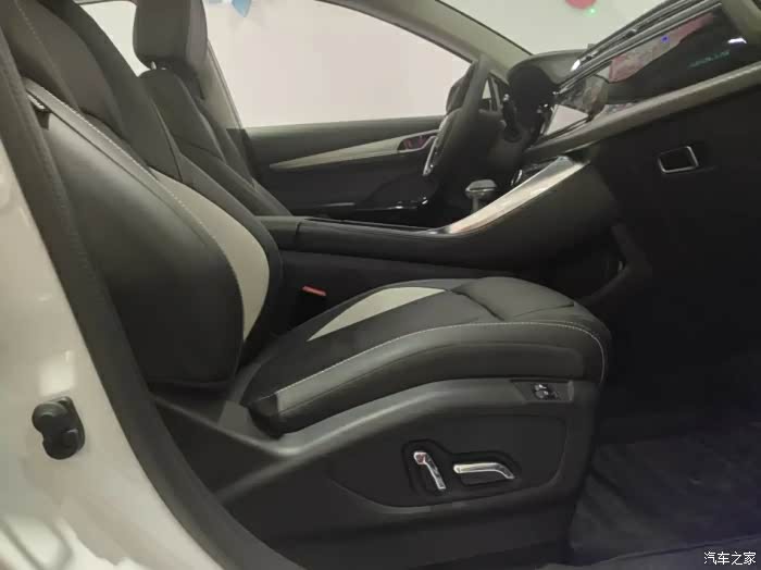 内饰都是用皮包裹的,加上装饰条和氛围灯看着比较豪华
